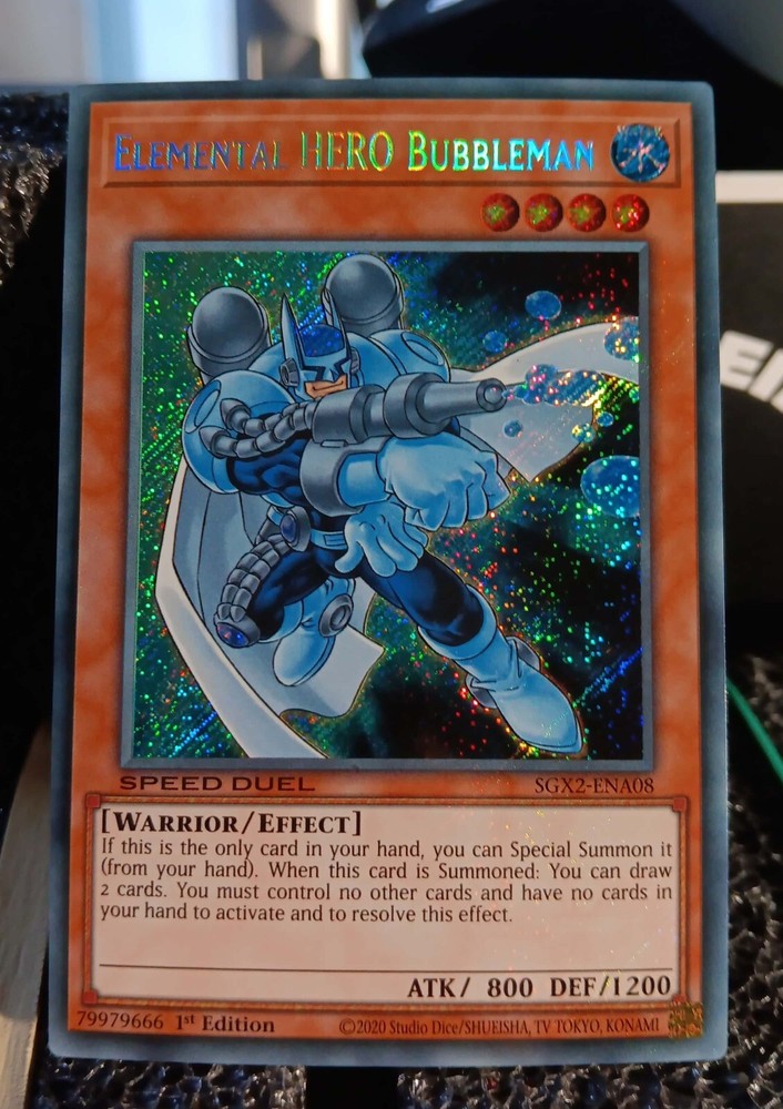 This rare and highly sought-after Yu-Gi-Oh! card features the Elemental Hero Bubbleman, with a rarity level of Secret Rare. It has a unique finish of Foil, and is a 1st Edition promo card. The card is made of high-quality card stock material, and is standard sized. The card belongs to the Yu-Gi-Oh! TCG game, with an attack power of 500 and defense/toughness of 1100. It is an effect type card, and is numbered 79109599. The card is in English language, manufactured by Konami in the United States. It is suitable for ages 6 and up, and is a great addition to any collector's set.
