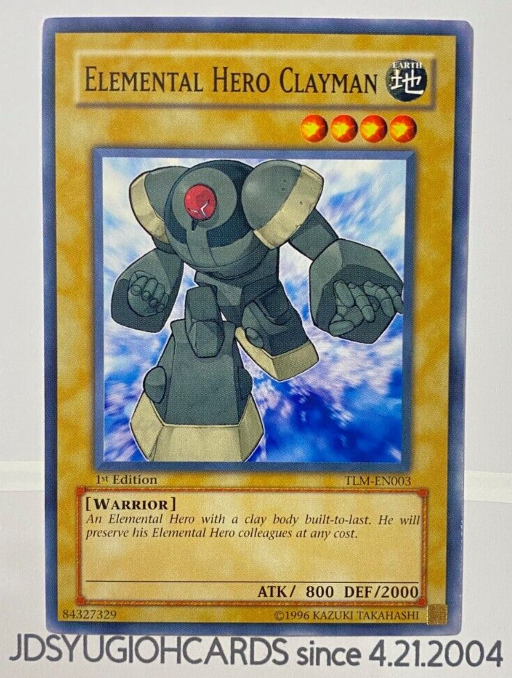 So, I came across my YUGIOH CARD COLLECTION, so decided to sell them like I did about 17 years ago. None of my cards have ever been played with unless otherwise stated. This listing is for "ONE" YuGiOh card : Elemental Hero Clayman 1st Ed TLM-EN003 MINT/NEAR MINT This card is in MINT/ NEAR MINT. Grading Scale Mint - Pack Fresh New! Fresh Clean Card with No Visual Imperfections Near Mint (NM) - Overall, Pretty Good. May have very minor imperfections/play ware/light scratches Light Play (LP) - Card will have noticeable play ware AND OR light scratches OR possibly a small crease/dent(s) if the rest the card is in great shape Moderate Play (MP ) - Card will have a more considerable amount of play ware AND OR crease(s). Heavy Play (HP) - Card will have significant play ware/creases, may have other damages such as scratches, water damages etc. Damaged (DMG) - Very significant damages, such as creases, play ware, scratches, bends/tares but NO missing pieces. No cards with missing portions will be up for sale unless included in an auction as a lot sale For more information on any of my card's condition, shipping info, or any other questions, PLEASE feel FREE to message me. SHIPPING CALCULATOR: They are exact charges plus $1.50 handling fee, for packaging and misc. costs. If you feel there is an error, please email me. Payments not received within 7 days will be automatically revoked and relisted. We do combine shipping it is an additional $1.50 and up (depending on the item/s) off of each item/s original S&H that it would actually be. If you do not agree with any of our policies for any reason, including, how we ship, and what the charges are or anything else, we respectfully request that you do not bid on our auctions. Thank You in Advance! This card is Tournament Legal and is an Konami English/American card. Thank you :)