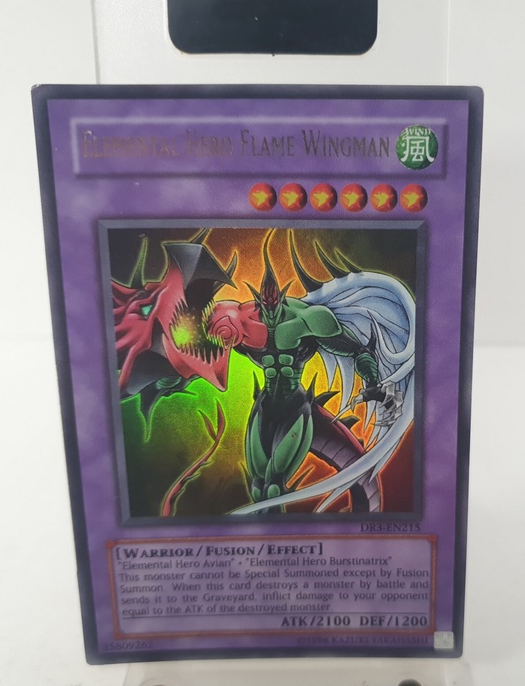 Yu-Gi-Oh! Elemental Hero Flame Wingman - DR3-EN215 - Ultra Rare This card is in good condition and comes with sleeve Please See Photos Picture of actual item no stock photos. This item will be sent By Tracked Courier 3 to 5 Working Days so it will require a signature upon delivery, Any questions please contact us