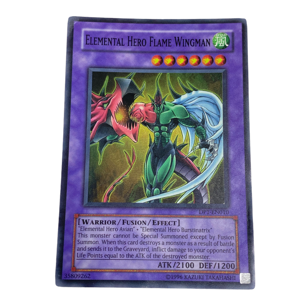 Yu-Gi-Oh! Elemental Hero Flame Wingman Super Rare Trading Card DP1-EN010 PACKAGE INCLUDES: 1x Card YOU WILL RECEIVE EXACTLY WHAT THE PACKAGE INCLUDES. THE PHOTOS ARE A REPRESENTATION OF WHAT THE PACKAGE INCLUDES IN THE CONDITION OF YOUR CHOICE. IF IT IS NOT IN THE PHOTO NOR LISTED ABOVE DO NOT ASSUME IT IS INCLUDED. SINCE WE HAVE THE SAME ITEM(S) IN MULTIPLE DIFFERENT CONDITIONS THE "CHOOSE CONDITION" OPTION ALLOWS YOU TO CHOOSE THE CONDITION OF THE ITEM(S). Condition Table: For Parts- An item for parts or repair that does not operate as it was intended. This includes items that are missing pieces, not fully operational and will need additional service, repair, and/or parts. Sold AS-IS. Poor- An item with obvious and major signs of wear, tear, holes, fading, damage, etc. 100% Authentic & Tested Working. Good- An item with minor signs of wear, tear, holes, fading, damage, etc. 100% Authentic & Tested Working. Very Good- An item with little to no signs of wear, tear, holes, fading, damage, etc. 100% Authentic & Tested Working. Brand New- An item that has never been used and shows no damaged. PLEASE MESSAGE US BEFORE YOU PURCHASE IF YOU ARE UNSURE WHAT YOU WILL BE RECEIVING