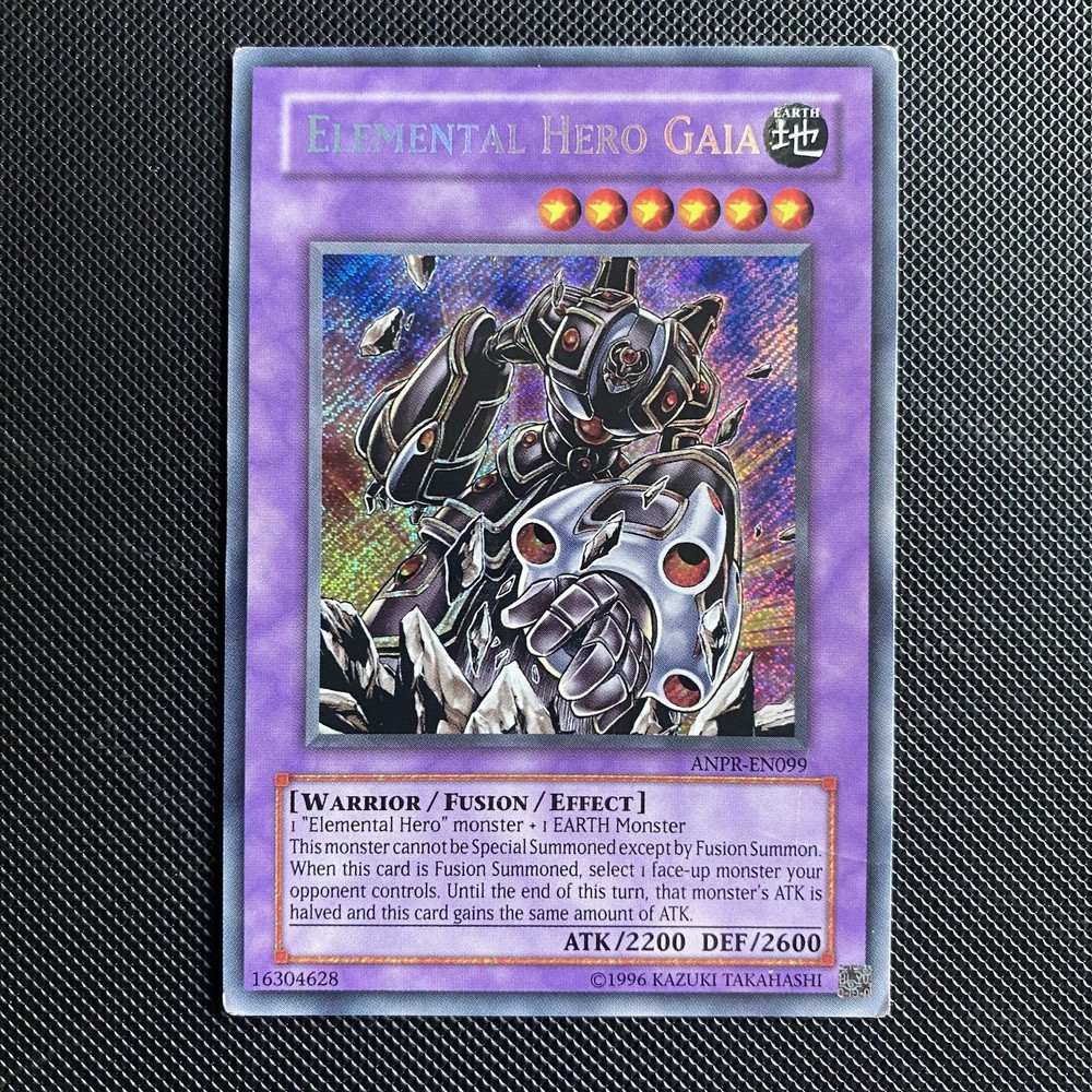 YuGiOh Elemental Hero Gaia Secret Rare ANPR-EN099 Unlimited Edition HP. Heavy play
