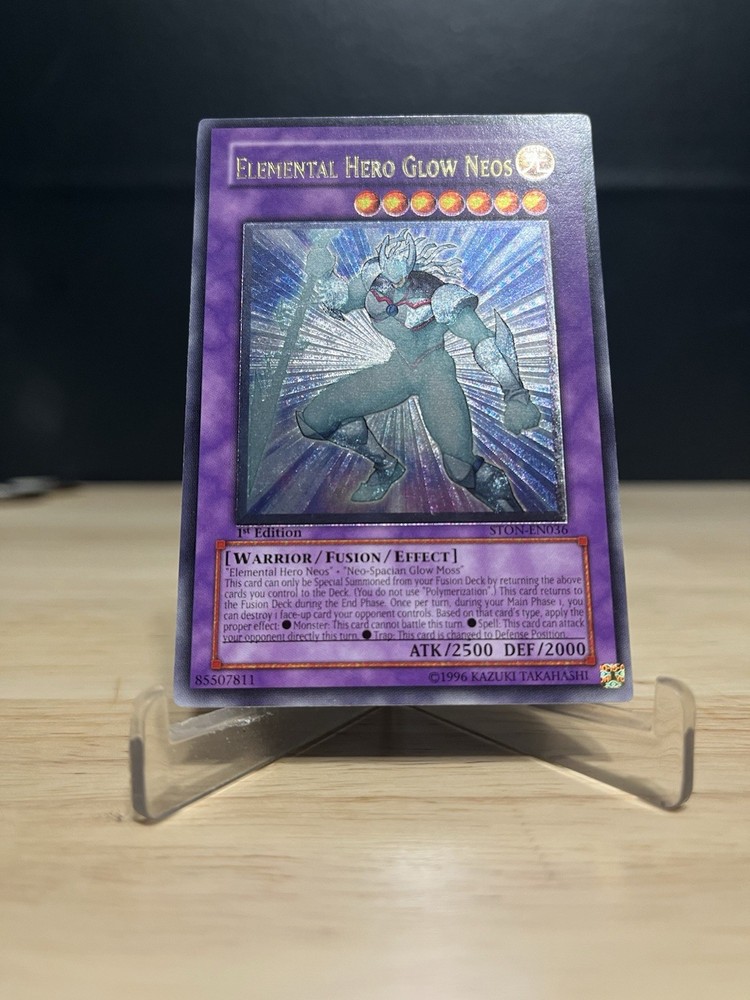 VLP-NM - Please carefully check over photos and message if you have any questions. Will ship sleeved in a top loader inside a team bag protected with cardboard inside a bubble mailer. Unleash the power of Elemental Hero Glow Neos, a must-have for any Yu-Gi-Oh! TCG collector or duelist. From the Strike of Neos set, this card bears the prestige of being an Ultimate Rare 1st Edition, featuring the distinguished card number STON-EN036. Its Fusion card type adds a unique capability to your gameplay, while its English language makes it a valuable piece for North American players. Proudly manufactured by Konami, this card is a testament to the rich lore and strategic depth of the Yu-Gi-Oh! universe. As an Ultimate stage card, it brings a significant advantage to your deck, provided you know how to harness its potential. Whether for competitive play or collection, Elemental Hero Glow Neos is a card that stands out.