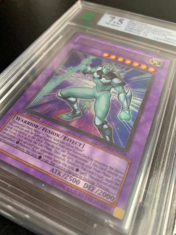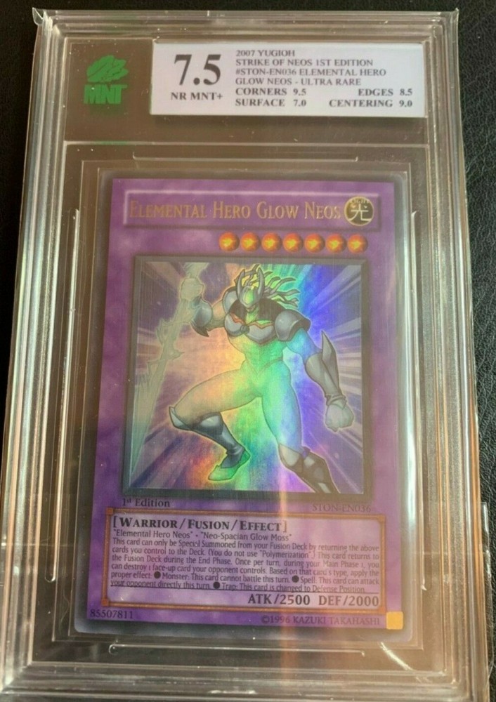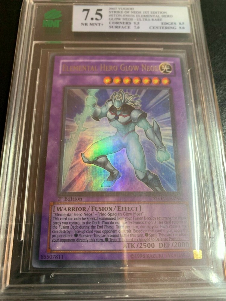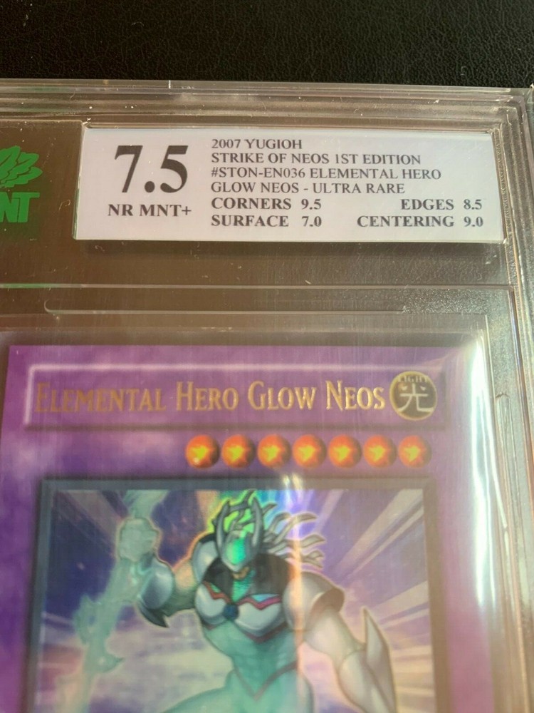 THIS is a MNT graded 7.5 STRIKE OF NEOS Elemental Hero Glow Neos card from Yu-Gi-Oh! Bare in mind that MNT grades the hardest out of all grading companies. It is a card in pristine condition and definitely a collectors item. Message me with any questions. This item has only TRACKED shipping; do not ask me otherwise. Shipping around Canada: Tracked shipping $15.00 Shipping to the U.S : Tracked Shipping $18.00 INTL shipping will be added with various ranging prices (Tracked only) Feel free to ask any questions, thank you for viewing! Please Note** I am a real seller. Any pictures under my listings are taken by me and reflect the actual card you will be receiving upon purchase. I DO NOT accept money off-site of eBay and payment is to be made via PayPal through eBay. Do not ask me otherwise. Sincerely, alexianni_0