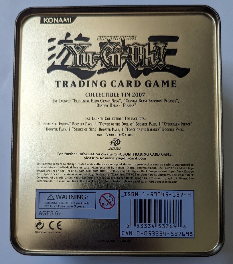 This contains Yu-Gi-Oh! Elemental Hero Grand Neos Collectible Tin, No Cards. It does come with Plastic Insert....
