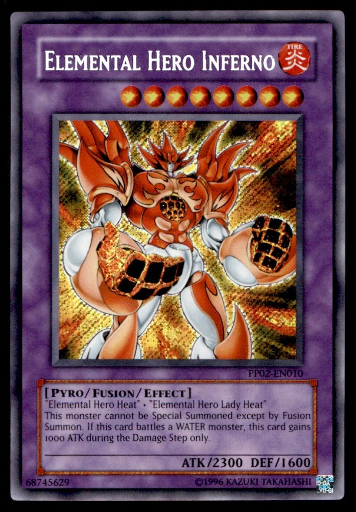 About Me Other Listings Feedback Add to Favorites Contact Me Bluenose Yu-Gi-Oh! Elemental Hero Inferno #PP02-EN010 Near Mint No stock photo / These are real scans or pictures Details Description: Elemental Hero Inferno Category: Yugioh Year: 1996 Product: Yu-Gi-Oh! Card Number: PP02-EN010 Special: Near Mint Dimensions: 3½" x 2¼" SKU: YU B0004 R03 A (28) Payment Payment for buy it now is required immediately and for auctions it must be paid within 72 hours. Shipping Shipments usually make their way out in 1-2 business days. Returns and Claims Please view listing photo and description prior to purchase of card to make sure the card and condition is right for you! About Us Please keep in mind the following conditions .-------------------------------------------Near Mint: a card that shows very little to no signs of ware or usage such as very little whiting. -------------------------------------------Light Play: A card that shows signs of ware such as but not limited to whiting, slight bend or scratches. -------------------------------------------Heavy Play: A card that shows signs of ware, whiting, bending, creasing, folding or other various issues.-------------------------------------------Damaged: a card in very bad condition can have some or all of the above mentioned condition notes including peeling, stains, writing, etc.-------------------------------------------The photo in ads are the EXACT card you will recieve. Listing By Kronocard trading cards software v2.8.2.3