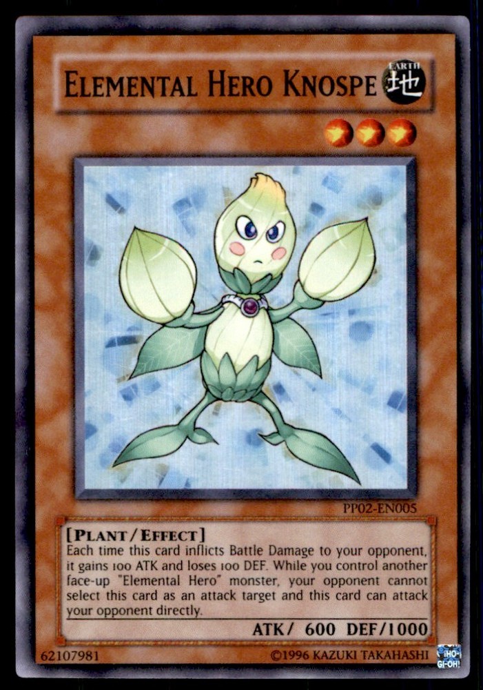 About Me Other Listings Feedback Add to Favorites Contact Me Bluenose Yu-Gi-Oh! Elemental Hero Knospe #PP02-EN005 Light Play No stock photo / These are real scans or pictures Details Description: Elemental Hero Knospe Category: Yugioh Year: 1996 Product: Yu-Gi-Oh! Card Number: PP02-EN005 Special: Light Play Dimensions: 3¼" x 2¼" SKU: YU B0003 R04 P (1) Payment Payment for buy it now is required immediately and for auctions it must be paid within 72 hours. Shipping Shipments usually make their way out in 3 business days. All orders to USA under 800$ USD typically are NOT subject to import or duty! We also offer free shipping on all our cards for north america. Returns and Claims Please view listing photo and description prior to purchase of card to make sure the card and condition is right for you! About Us Please keep in mind the following conditions .-------------------------------------------Near Mint: a card that shows very little to no signs of ware or usage such as very little whiting. -------------------------------------------Light Play: A card that shows signs of ware such as but not limited to whiting, slight bend or scratches. -------------------------------------------Heavy Play: A card that shows signs of ware, whiting, bending, creasing, folding or other various issues.-------------------------------------------Damaged: a card in very bad condition can have some or all of the above mentioned condition notes including peeling, stains, writing, etc.-------------------------------------------The photo in ads are the EXACT card you will recieve. Listing By Kronocard trading cards software v2.7.0.1