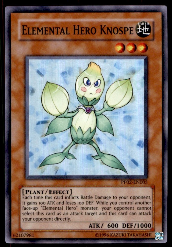 About Me Other Listings Feedback Add to Favorites Contact Me Bluenose Yu-Gi-Oh! Elemental Hero Knospe #PP02-EN005 Light Play No stock photo / These are real scans or pictures Details Description: Elemental Hero Knospe Category: Yugioh Year: 1996 Product: Yu-Gi-Oh! Card Number: PP02-EN005 Special: Light Play Dimensions: 3¼" x 2¼" SKU: YU B0005 R01 I (31) Payment Payment for buy it now is required immediately and for auctions it must be paid within 72 hours. Shipping Shipments usually make their way out in 1-2 business days. Returns and Claims Please view listing photo and description prior to purchase of card to make sure the card and condition is right for you! About Us Please keep in mind the following conditions .-------------------------------------------Near Mint: a card that shows very little to no signs of ware or usage such as very little whiting. -------------------------------------------Light Play: A card that shows signs of ware such as but not limited to whiting, slight bend or scratches. -------------------------------------------Heavy Play: A card that shows signs of ware, whiting, bending, creasing, folding or other various issues.-------------------------------------------Damaged: a card in very bad condition can have some or all of the above mentioned condition notes including peeling, stains, writing, etc.-------------------------------------------The photo in ads are the EXACT card you will recieve. Listing By Kronocard trading cards software v2.8.2.3
