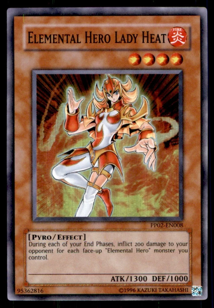 About Me Other Listings Feedback Add to Favorites Contact Me Bluenose Yu-Gi-Oh! Elemental Hero Lady Heat #PP02-EN008 Light Play No stock photo / These are real scans or pictures Details Description: Elemental Hero Lady Heat Category: Yugioh Year: 1996 Product: Yu-Gi-Oh! Card Number: PP02-EN008 Special: Light Play Dimensions: 3½" x 2¼" SKU: YU B0003 R04 Q (31) Payment Payment for buy it now is required immediately and for auctions it must be paid within 72 hours. Shipping Shipments usually make their way out in 3 business days. All orders to USA under 800$ USD typically are NOT subject to import or duty! We also offer free shipping on all our cards for north america. Returns and Claims Please view listing photo and description prior to purchase of card to make sure the card and condition is right for you! About Us Please keep in mind the following conditions .-------------------------------------------Near Mint: a card that shows very little to no signs of ware or usage such as very little whiting. -------------------------------------------Light Play: A card that shows signs of ware such as but not limited to whiting, slight bend or scratches. -------------------------------------------Heavy Play: A card that shows signs of ware, whiting, bending, creasing, folding or other various issues.-------------------------------------------Damaged: a card in very bad condition can have some or all of the above mentioned condition notes including peeling, stains, writing, etc.-------------------------------------------The photo in ads are the EXACT card you will recieve. Listing By Kronocard trading cards software v2.7.0.1