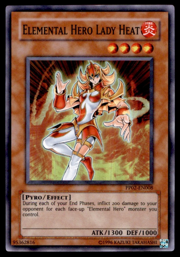 About Me Other Listings Feedback Add to Favorites Contact Me Bluenose Yu-Gi-Oh! Elemental Hero Lady Heat #PP02-EN008 Near Mint No stock photo / These are real scans or pictures Details Description: Elemental Hero Lady Heat Category: Yugioh Year: 1996 Product: Yu-Gi-Oh! Card Number: PP02-EN008 Special: Near Mint Dimensions: 3¼" x 2¼" SKU: YU B0004 R01 E (1) Payment Payment for buy it now is required immediately and for auctions it must be paid within 72 hours. Shipping Shipments usually make their way out in 1-2 business days. Returns and Claims Please view listing photo and description prior to purchase of card to make sure the card and condition is right for you! About Us Please keep in mind the following conditions .-------------------------------------------Near Mint: a card that shows very little to no signs of ware or usage such as very little whiting. -------------------------------------------Light Play: A card that shows signs of ware such as but not limited to whiting, slight bend or scratches. -------------------------------------------Heavy Play: A card that shows signs of ware, whiting, bending, creasing, folding or other various issues.-------------------------------------------Damaged: a card in very bad condition can have some or all of the above mentioned condition notes including peeling, stains, writing, etc.-------------------------------------------The photo in ads are the EXACT card you will recieve. Listing By Kronocard trading cards software v2.8.2.3