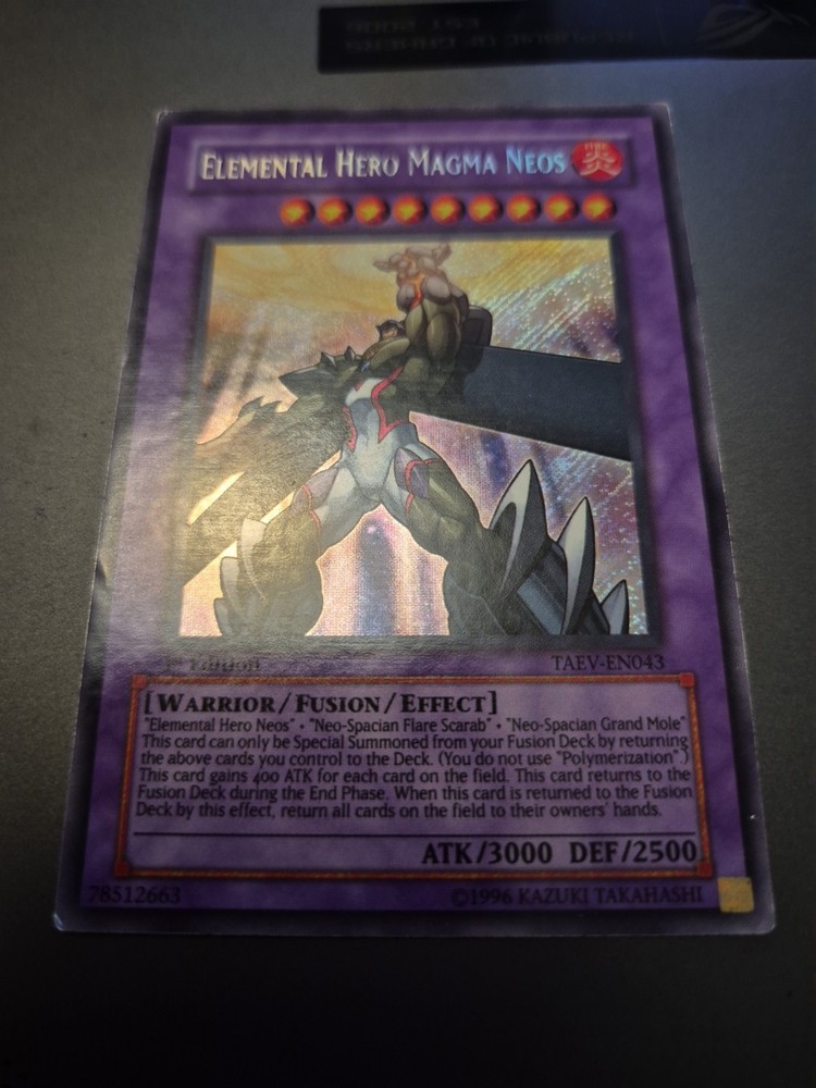 Yu-Gi-Oh Elemental Hero Magma Neos TAEV-EN043 Secret Rare 1st Edition. Condition is Ungraded. Dispatched with Royal Mail 2nd Class.