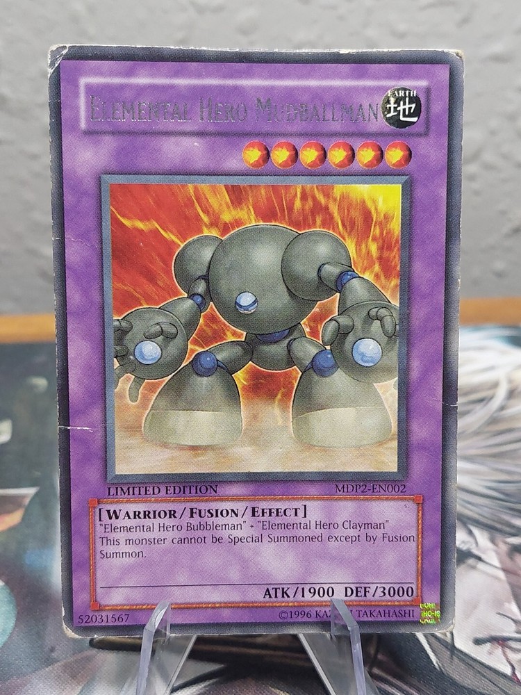 Elemental Hero Mudballman is a rare card from the Yu-Gi-Oh! TCG. It is a limited edition card with HP/DMG written on it. The card belongs to the - Yugi - set and has the card number MDP2-EN002....