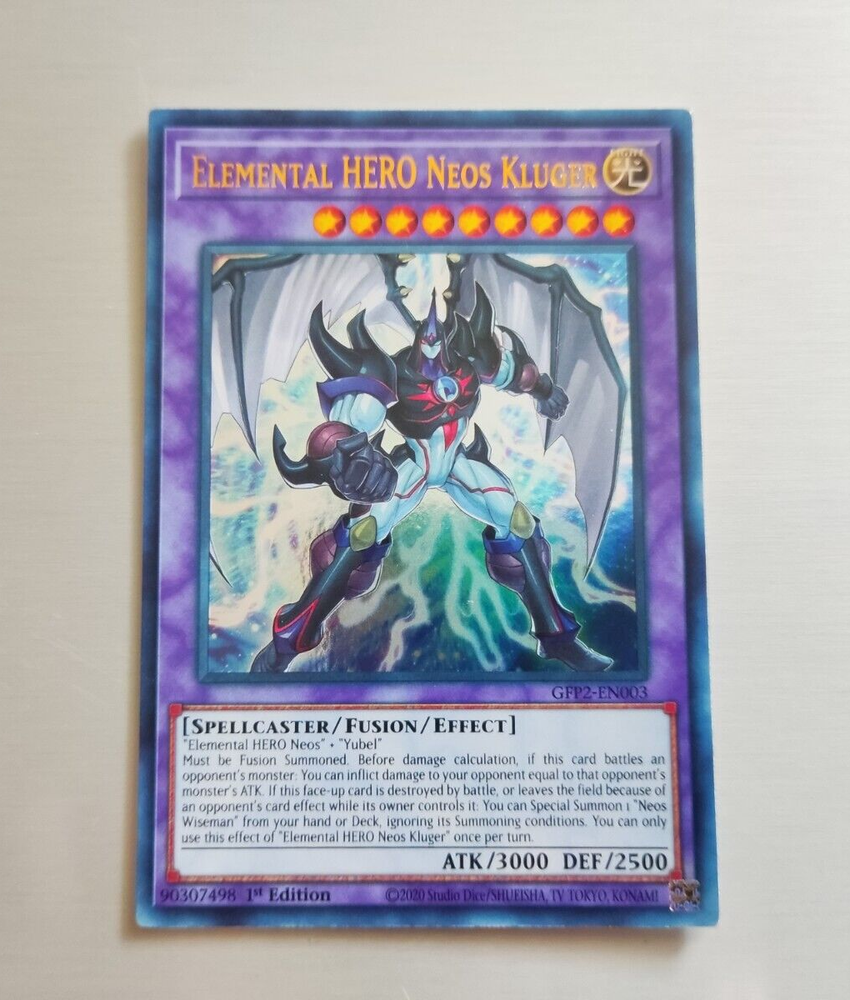 INFORMATION Yu-Gi-Oh! Elemental Hero Neos Kluger GFP2-EN003 1st Edition Ultra Rare ... Condition is "Used" Near Mint. If you need more photos of the item, feel free to contact us. SHIPPING & DELIVERY Shipped in PWE if ( Under $20 orders ) Shipped with USPS First Class . Tracking included. ( Above $20 orders ) Priority Mail Is for graded cards, but you can request the First Class option instead. We will dispatch your item within 24 hours if possible. If not it will be within 2-3 business days of payment confirmation. ITEM PACKAGING / CARD CONDITION Your Item will be protected inside a sleeve, Top loader, Team Bag and within a Bubble Mailer. / Near Mint / Cards in Near Mint (NM) condition show minimal wear from shuffling, play or handling and can have a nearly unmarked surface, corners and unblemished edges outside of a few slight flaws. A Near Mint card may have slight edge wear or a scratch or three, but overall look nearly unplayed with no major defects. The acceptable range of cards within the Near Mint condition includes both cards with no imperfections and cards with a few slight imperfections. / Lightly Played / Cards in Lightly Played (LP) condition may have minor border or corner wear, scuffs or scratches. There are no major defects such as grime, bends or issues with the structural integrity of the card. Noticeable imperfections are okay, but none should be too severe or at too high a volume. The acceptable range of cards within the Lightly Played condition includes both cards with few or a handful of minor imperfections. / Moderately Played / Cards in Moderately Played (MP) condition can have border wear, corner wear, scratching or scuffing, creases or whitening or any combination of moderate examples of these flaws. A Moderately Played card may have some form of imperfection impacting a small area of the card from mishandling or poor storage, such as creasing that doesn't affect card integrity, in combination with other issues such as scratches, scuffs or border/edge wear. DEAR CUSTOMERS If you were happy with your purchase, please leave us a positive feedback and don't forget to introduce us to your friends! Please contact us if your item didn't arrive.