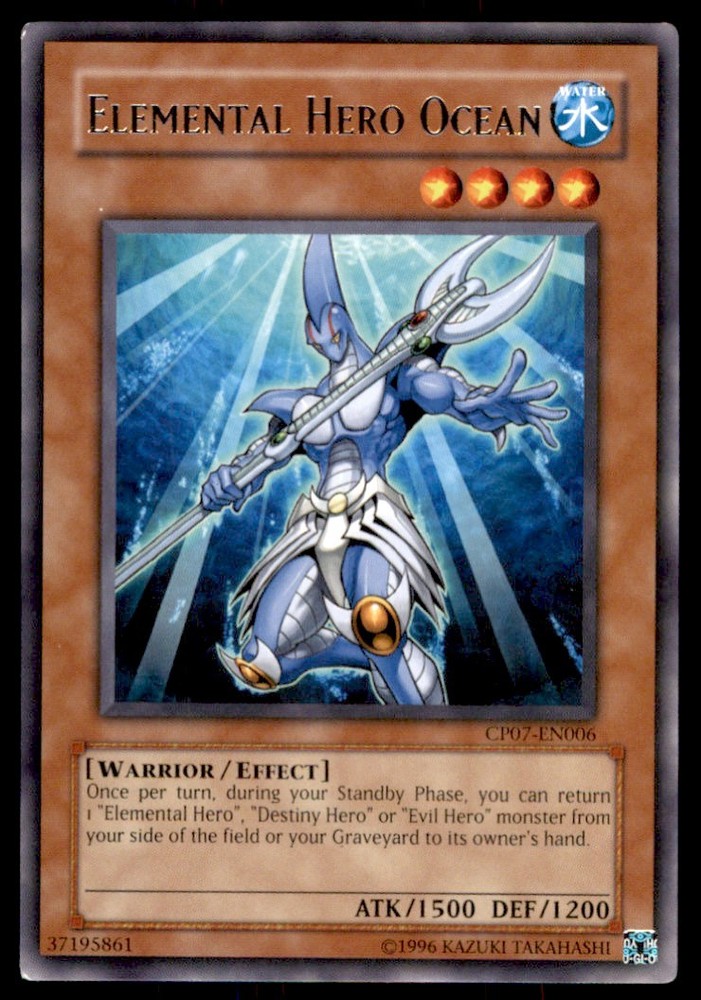 About Me Other Listings Feedback Add to Favorites Contact Me Bluenose Yu-Gi-Oh! Elemental Hero Ocean #CP07-EN006 Light Play No stock photo / These are real scans or pictures Details Description: Elemental Hero Ocean Category: Yugioh Year: 1996 Product: Yu-Gi-Oh! Card Number: CP07-EN006 Special: Light Play Dimensions: 3¼" x 2¼" SKU: YU B0005 R01 O (2) Payment Payment for buy it now is required immediately and for auctions it must be paid within 72 hours. Shipping Shipments usually make their way out in 1-2 business days. Returns and Claims Please view listing photo and description prior to purchase of card to make sure the card and condition is right for you! About Us Please keep in mind the following conditions .-------------------------------------------Near Mint: a card that shows very little to no signs of ware or usage such as very little whiting. -------------------------------------------Light Play: A card that shows signs of ware such as but not limited to whiting, slight bend or scratches. -------------------------------------------Heavy Play: A card that shows signs of ware, whiting, bending, creasing, folding or other various issues.-------------------------------------------Damaged: a card in very bad condition can have some or all of the above mentioned condition notes including peeling, stains, writing, etc.-------------------------------------------The photo in ads are the EXACT card you will recieve. Listing By Kronocard trading cards software v2.8.2.3