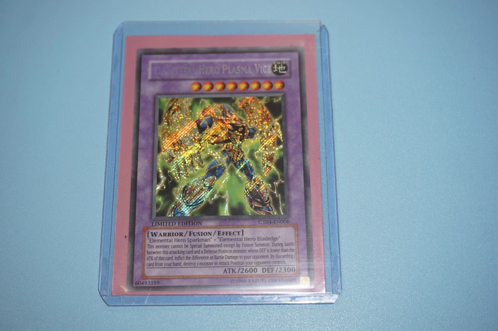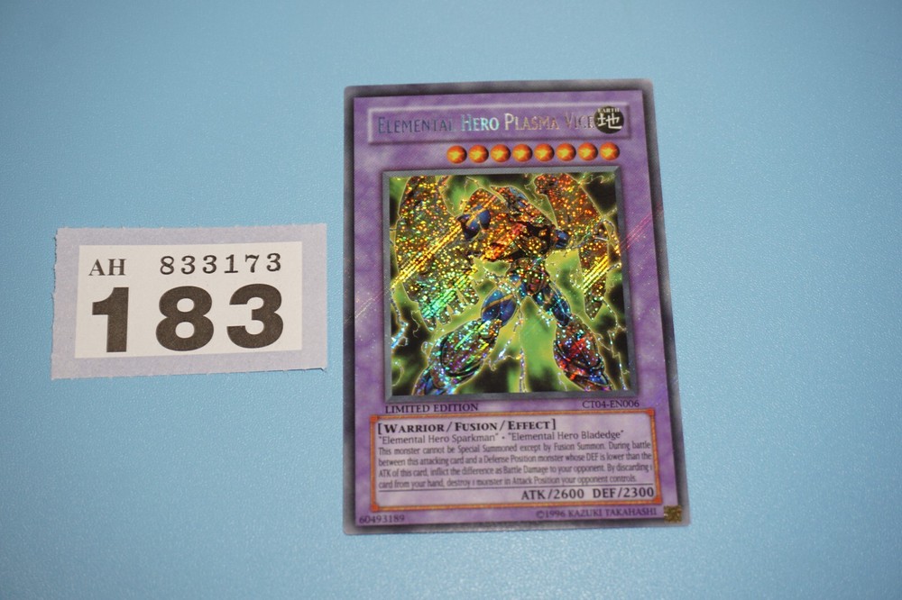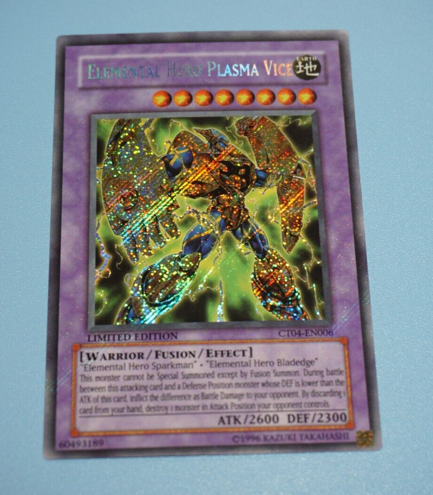 Hello and welcome to m y auction. For sale is a Yu-Gi-Oh Elemental Hero Plasma Vice Limited Edition CT04-EN006 Card. The card is in in good condition with some light play. The card comes in a top loader. This card has been well looked after. Please check out the photos for detail of condition and any imperfections. Please check out my other YuGiOh! Cards and Collectable items as more are added regularly. All item/s are sold as seen, What you see is what you get I offer postage discounts on multiple wins If you have any questions please feel free to contact me and i will respond within 24 hours Payment within 3 days of auction ending please Items will usually be dispatched within 3 working days after receiving cleared payment. Many thanks and good luck