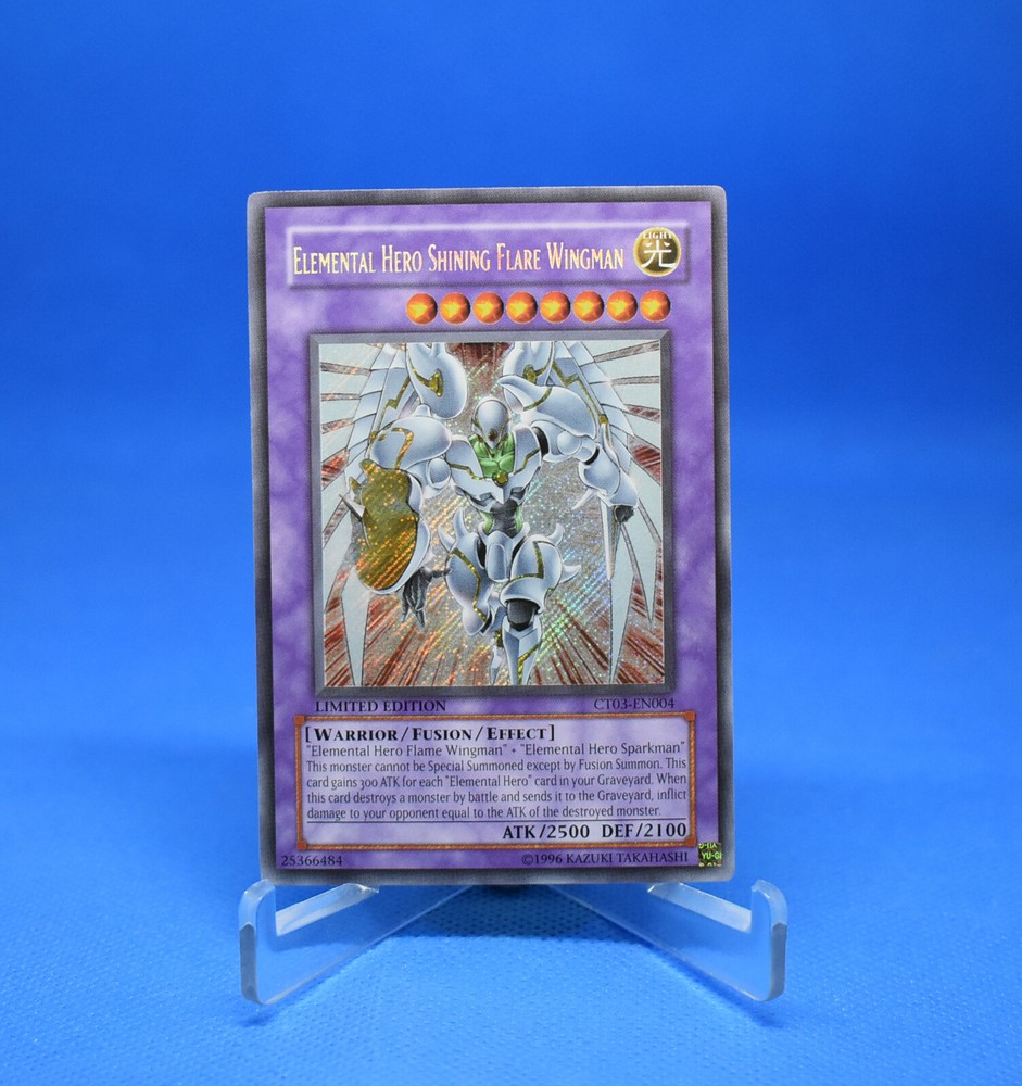 Yu-Gi-Oh! Elemental Hero Shining Flare Wing [CT03-EN004] Secret Rare Ltd Ed VLP Free shipping: Will be put in a sleeve and top loader, and then sent via PWE. Can add extra protection at your expense. If buying multiple, please add to cart before buying so everything can ship together. Thanks!