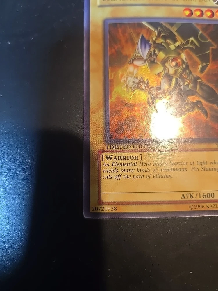 | Card Text | An Elemental Hero and a warrior of light who proficiently wields many kinds of armaments. His Shining Surge Flash cuts off the path of villainy. |