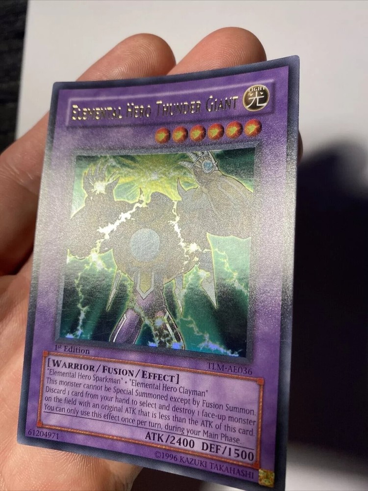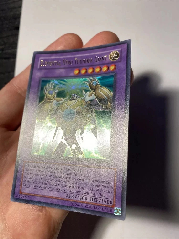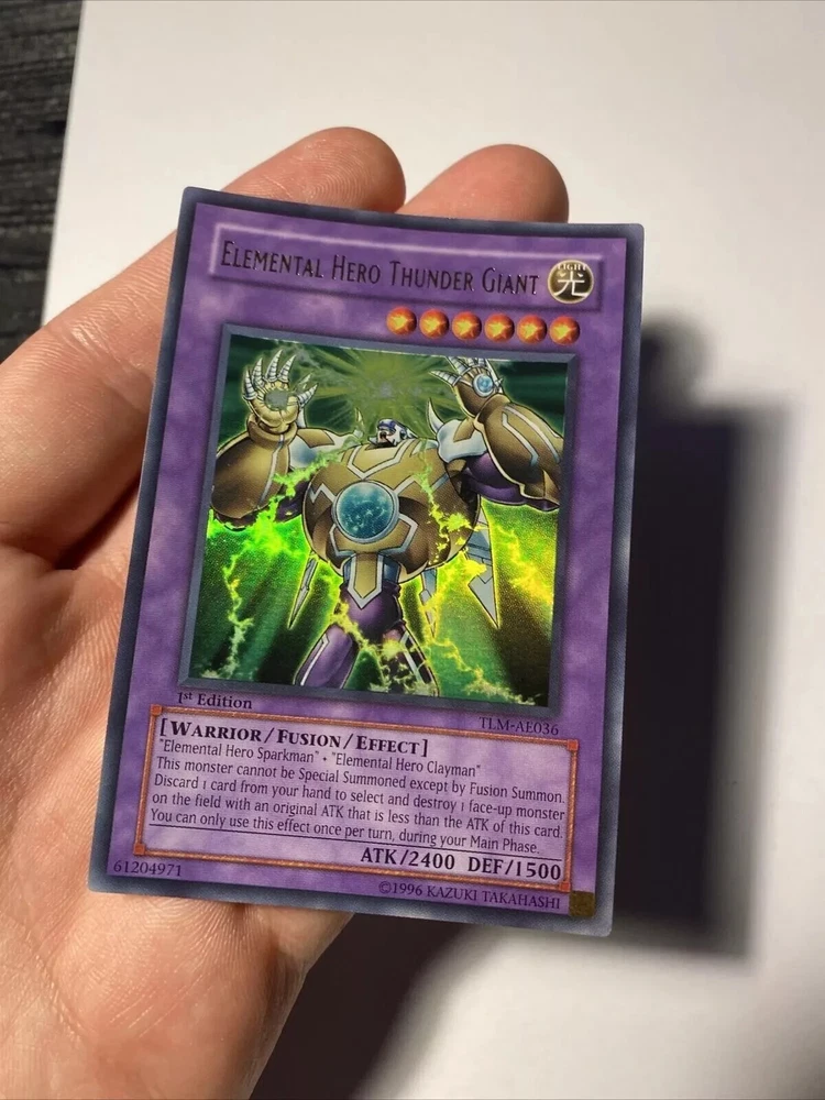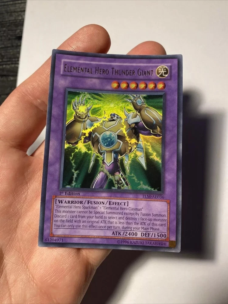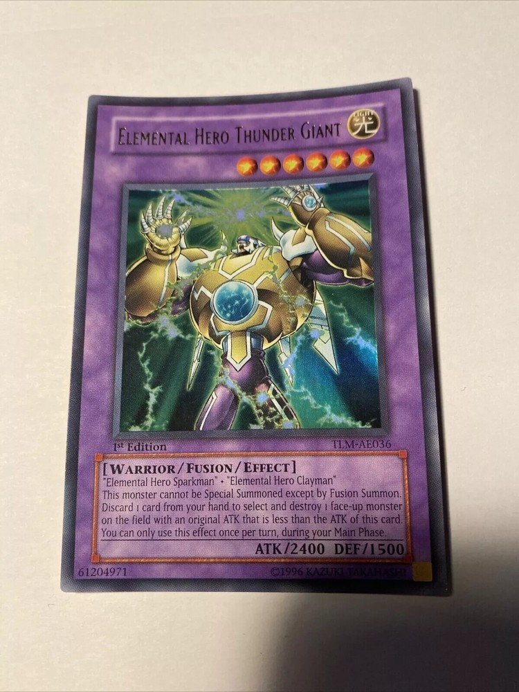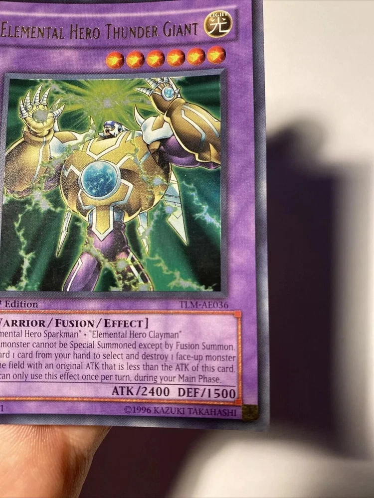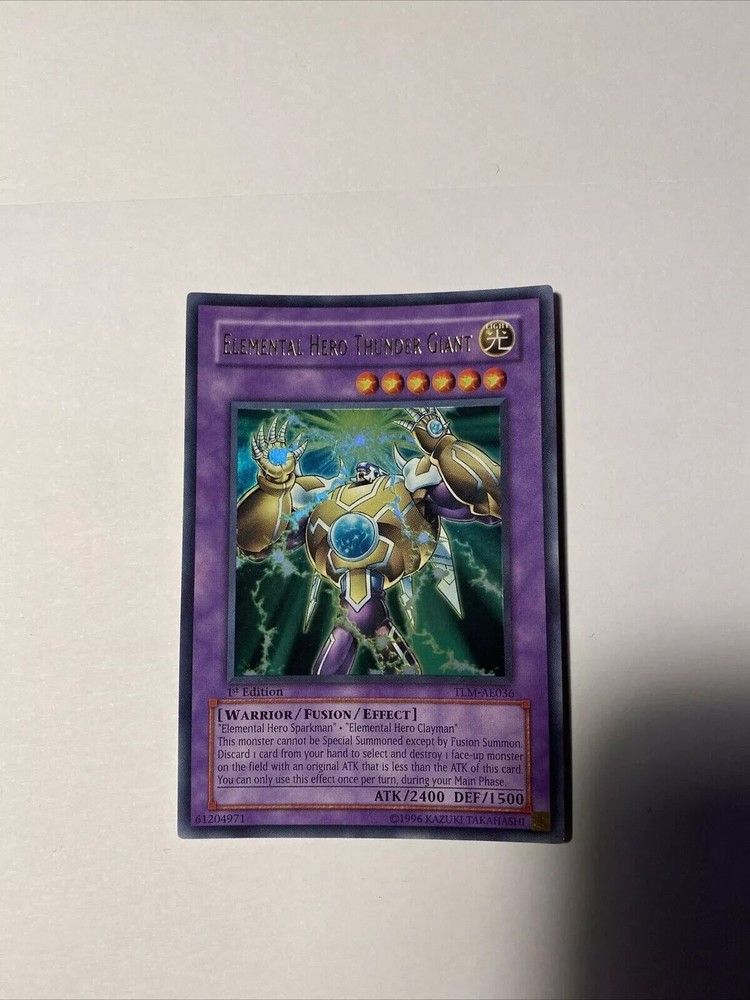 For the avid Yu-Gi-Oh! collector, this Asian English 1st Edition Elemental Hero Thunder Giant card is a must-have item. With its striking artwork and impressive abilities, this card is sure to be a valuable addition to any collection. The card is ungraded, but its pristine condition speaks for itself. Featuring the iconic Elemental Hero Thunder Giant, this card is perfect for fans of the Yu-Gi-Oh! series. Its Language aspect is English, ensuring that it can be enjoyed by fans from all over the world. The card name is prominently displayed, making it easy to identify. Additionally, it falls under the categories of Collectables and Collectable Card Games, adding to its collectability. This is an extremely rare version to own an Asian English variant of a Yu-Gi-Oh! GX card. Asian English cards in this era are insanely rare as the print run was so short for the GX sets making them almost extinct/none existent today. So don’t miss out! There is some light scraping on the artwork of the card, please use photos to judge condition.