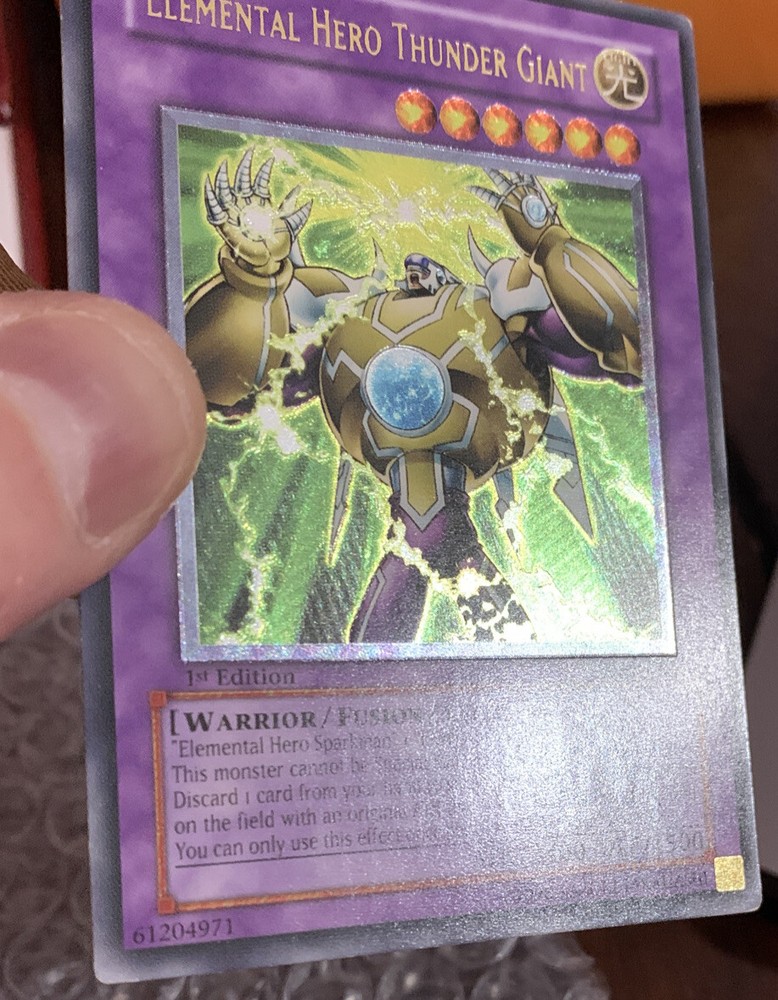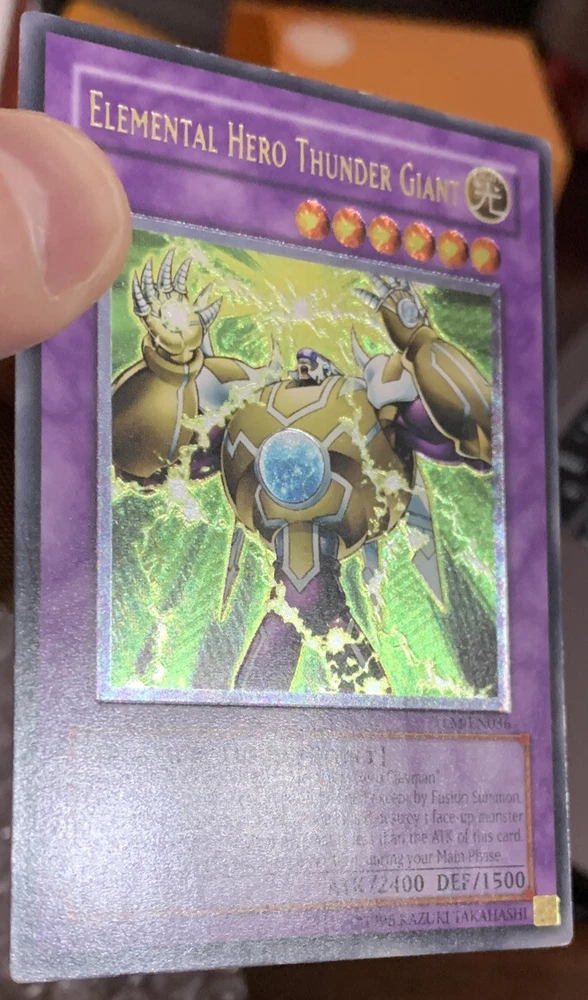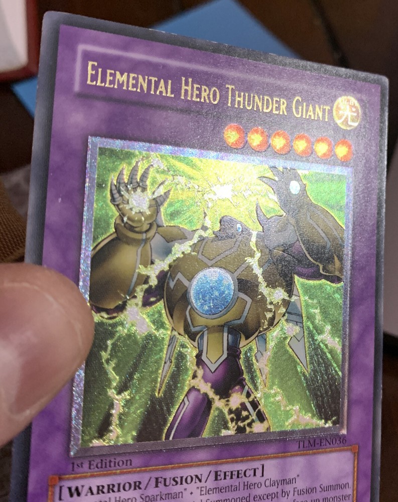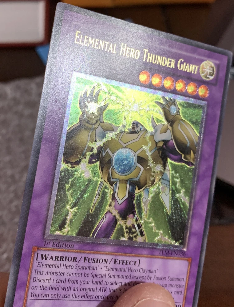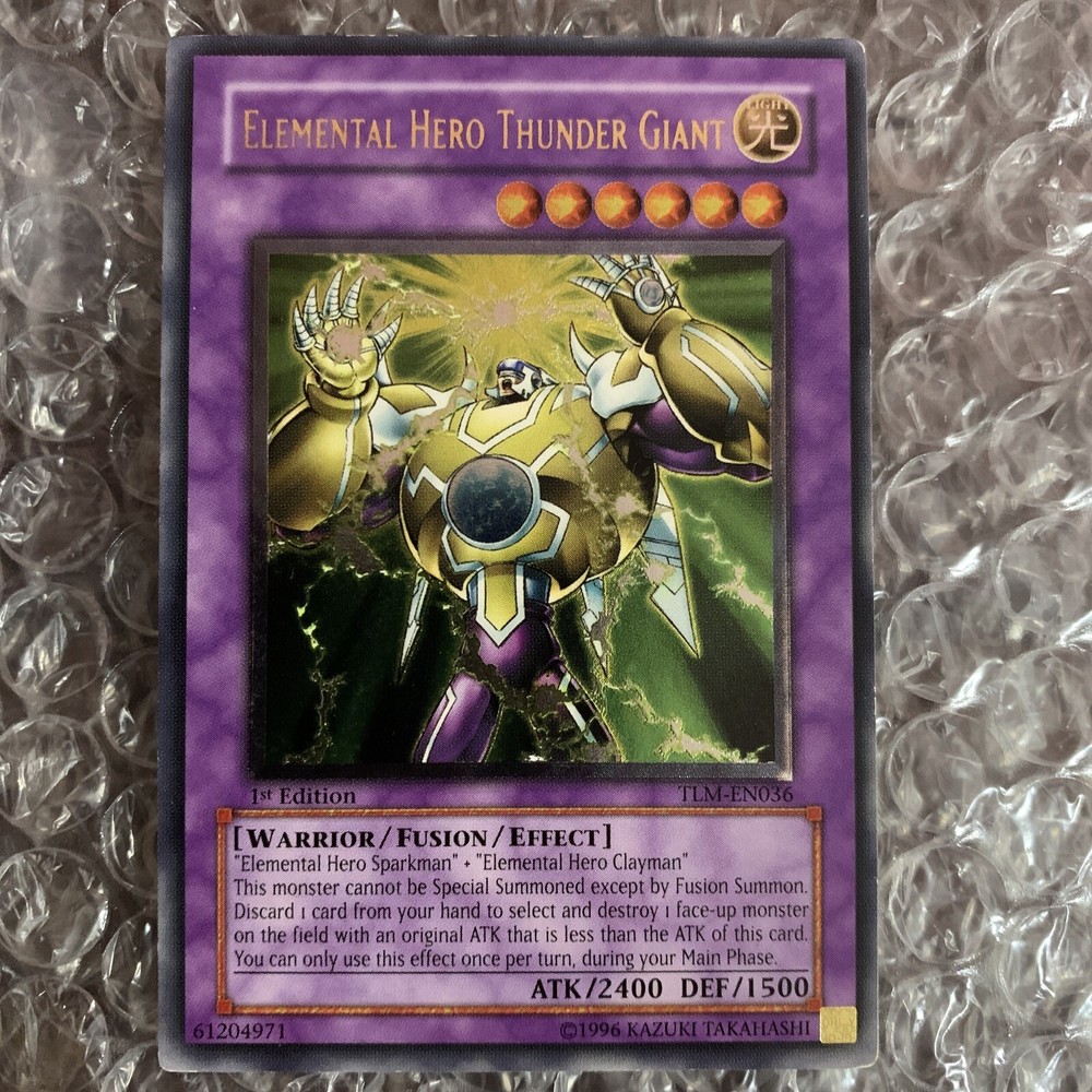 YuGiOh Elemental Hero Thunder Giant TLM-EN036 1st Ultimate Rare. Card has some hard to see indents and some edgewear. Very lightly played in my opinion Ask questions Thank you