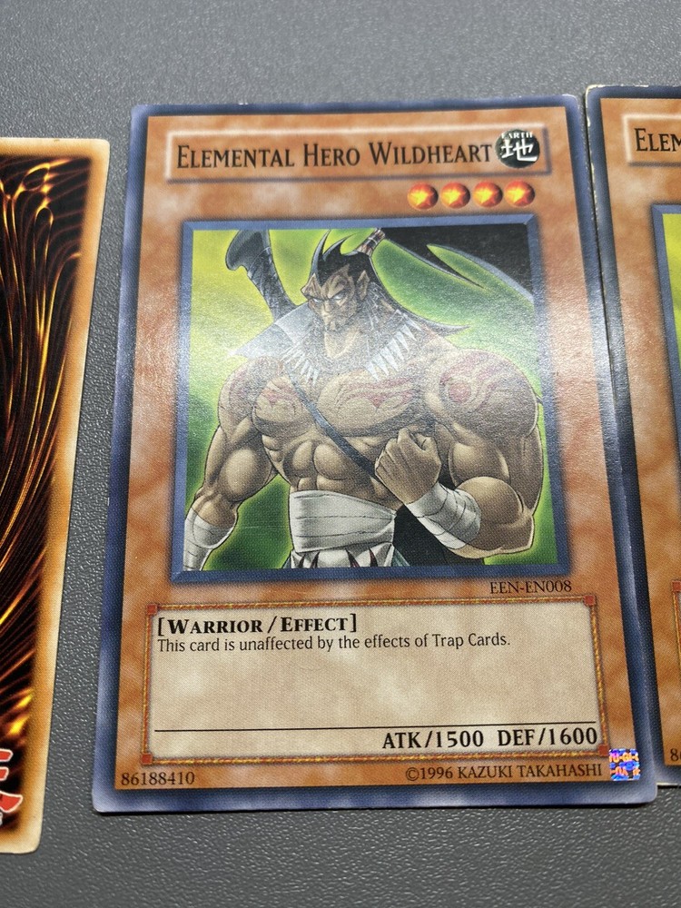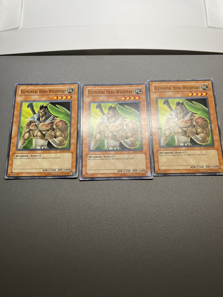 This listing is of 3 Elemental Hero Wildheart; one of them is 1st edition and the other two are unlimited. They are heavily played. Check pictures to see details on condition of the cards. The front and back of the cards are very dirty from gameplay. The front and the back are very scratched from gameplay. The four corners are very scratched up, bent and dented. “eBay International Shipping Program” and USA shipping only. No international shipping. I do combine/bundle shipping, so if it charges you high shipping price during adding to your cart (example: $20 or more), and it costs me (example: between $5 through $15), ill refund/discount the shipping discount difference. If you bundle up, you can send me an invoice, or I send one out to you of the final shipping costs of your bundled items. I do use recycled shipping items to stay eco friendly for our beautiful earth. Please leave positive feedback, and I will return positive feedback for better customer satisfaction, thanks.