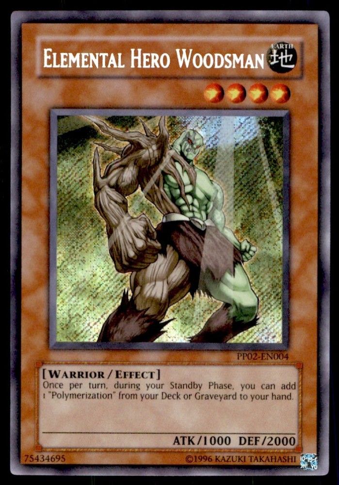 About Me Other Listings Feedback Add to Favorites Contact Me Bluenose Yu-Gi-Oh! Elemental Hero Woodsman #PP02-EN004 Light Play No stock photo / These are real scans or pictures Details Description: Elemental Hero Woodsman Category: Yugioh Year: 1996 Product: Yu-Gi-Oh! Card Number: PP02-EN004 Special: Light Play Dimensions: 3¼" x 2¼" SKU: YU B0003 R04 U (17) Payment Payment for buy it now is required immediately and for auctions it must be paid within 72 hours. Shipping Shipments usually make their way out in 3 business days. All orders to USA under 800$ USD typically are NOT subject to import or duty! We also offer free shipping on all our cards for north america. Returns and Claims Please view listing photo and description prior to purchase of card to make sure the card and condition is right for you! About Us Please keep in mind the following conditions .-------------------------------------------Near Mint: a card that shows very little to no signs of ware or usage such as very little whiting. -------------------------------------------Light Play: A card that shows signs of ware such as but not limited to whiting, slight bend or scratches. -------------------------------------------Heavy Play: A card that shows signs of ware, whiting, bending, creasing, folding or other various issues.-------------------------------------------Damaged: a card in very bad condition can have some or all of the above mentioned condition notes including peeling, stains, writing, etc.-------------------------------------------The photo in ads are the EXACT card you will recieve. Listing By Kronocard trading cards software v2.7.0.1