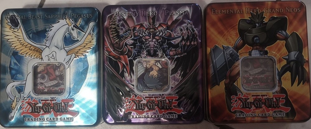 Yu-Gi-Oh Empty Tin of 3 NM-Mint Condition Crystal Beast Sapphire Pegasus Destiny Hero Plasma Elemental Hero Grand Neos See Picture. In-Stock, 100% AUTHENTIC. Accept Paypal. Generally, it takes sometime for delivery to outside US, depends on the custom clearance. some countries may take longer time. We don't ship to APO/FPO, Africa and some other countries. Please contact us for enquiry of countries excluded. Public holidays and Sunday are not included in the expected delivery date.