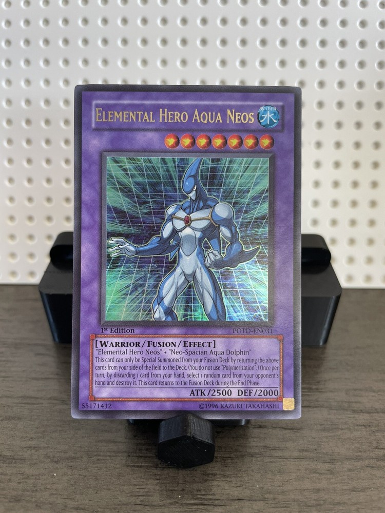 This Yu-Gi-Oh! TCG card is a must-have for any fan or collector. The Elemental Hero Aqua Neos card is an Ultimate Rare graded card from the Power of the Duelist set, with a water attribute, warrior monster type, and fusion card type. The card is in lightly played condition and is a 1st edition with features that make it unique. Please review the pictures before purchasing for condition of the card. Please let me know if you have any questions or need additional pictures.