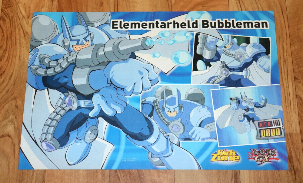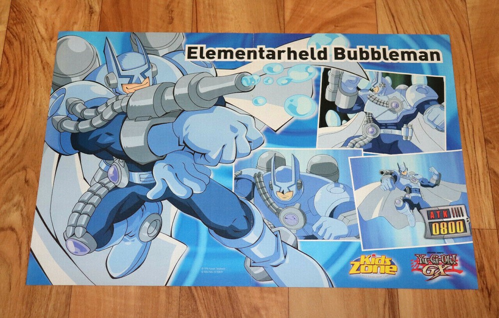 Yu-Gi-Oh! GX Elemental HERO Bubbleman / pokemon Characters Rare Small Poster Size Of Poster : 42x28cm its a German poster, the information on it is in German language its a double sided folded poster, not 2 separate posters it's a poster from magazine, therefore there are holes from the stapler pins on the poster