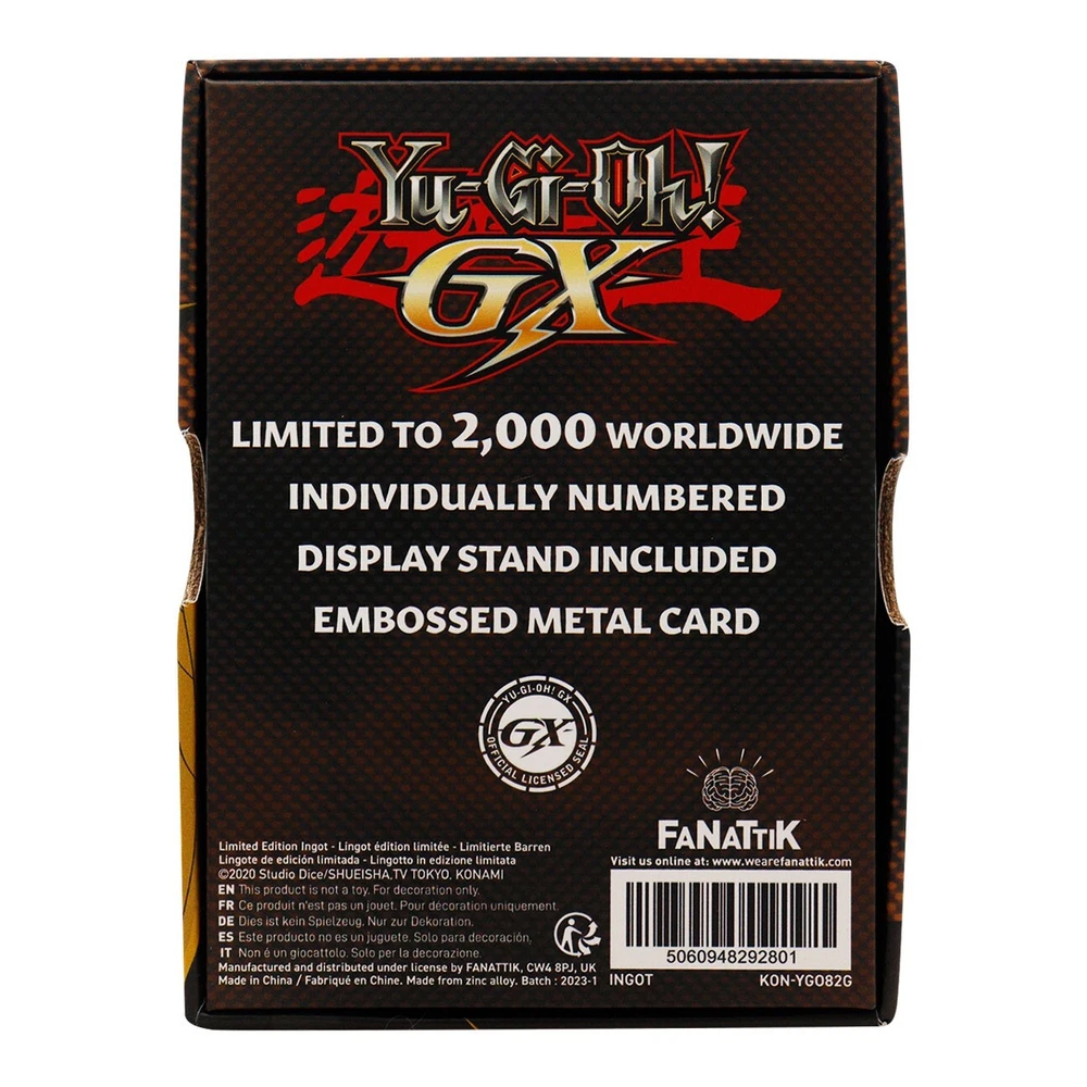 'Shine Bright, Hero!'. Play the Elemental Hero Deck with this Limited Edition 24k gold plated Yu-Gi-Oh! GX Ingot. This Officially Licensed, heavily embossed Collectible measures approximately 7.5 x 5.3cm. Elemental Hero Avian ingot is limited to 2000 worldwide with each being individually numbered. A display stand is included within its presentation box.