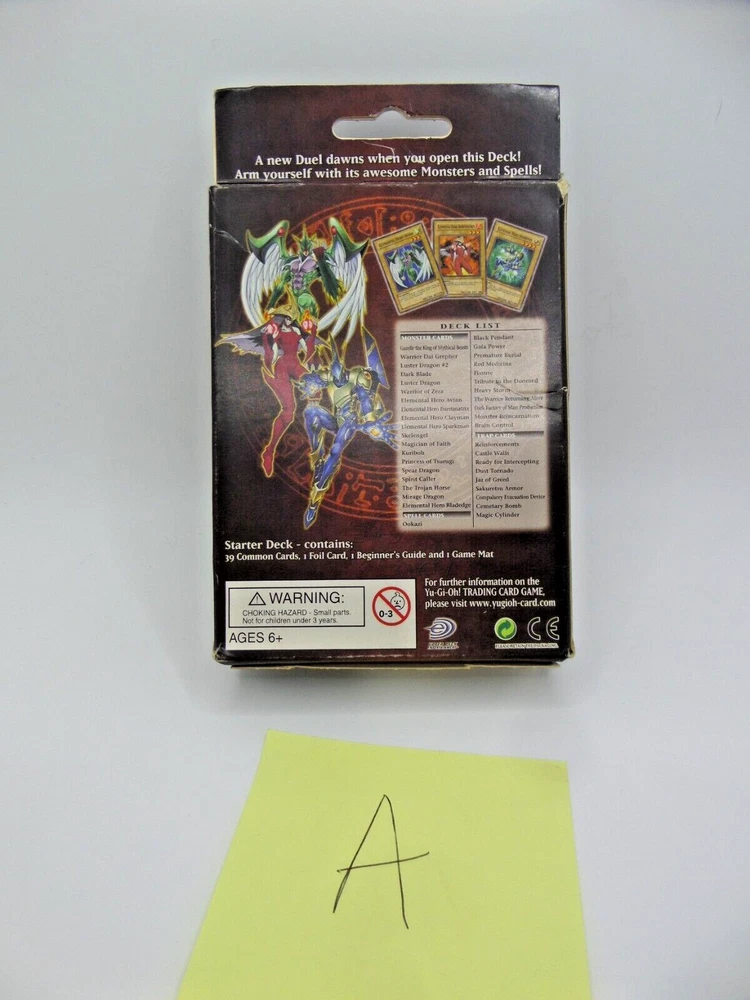 1 = Yu-Gi-Oh Elemental Hero's 1st Edition English New Starter Deck. (#A) Brand New Factory Sealed - One side of the tamper sticker has come loose on top, but never opened. **CARDS ARE NOT GRADED or THOROUGHLY CHECKED FOR SCRATCHES, SCUFFS, BENT ENDS, ETC - PLEASE SEE PICTURES** (We can take 1-5 pictures for you if needed, please just ask us through eBay messenger) Says on Box: Starter Deck - Contains: 39 Common Cards, 1 Foil Card, 1 Beginners Guide and 1 Game Mat Konami / Kazuki Takahashi, Upper Deck, Essential. 1996 Kazuki Takahashi Box has some scratches, scuffs, bent ends, dusty, etc. Estate Sale Listing. **ALL CARDS ARE SOLD AS-IS WHERE IS, NO REFUNDS, NO RETURNS, NOT GRADED, COULD HAVE DAMAGE, YOU'RE TAKING FULL RISK.*** FREE USPS SHIPPING TO LOWER 48 STATES ONLY.