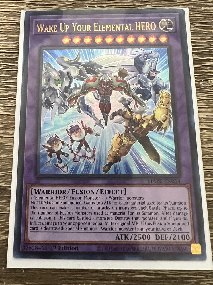 Yu-Gi-Oh MAZE-EN014 Wake Up Your Elemental HERO Ultra Rare 1st Edition NM. Condition is Ungraded. Shipped with eBay Standard Envelope for Eligible Items up to $20....