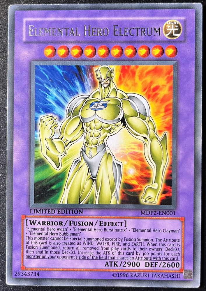 Guten Tag, hier haben Sie die Möglichkeit, folgende(n) Artikel zu erwerben: Elemental Hero Electrum Upper Deck Counterfeit: Zu erkennen am silbernen und gedrehten Auge von Anubis Zustand: EX DEAR INTERNATIONAL BUYERS FROM OUTSIDE THE EU: PLEASE SEND A DM IF YOU'RE INTERESTED IN THIS ITEM