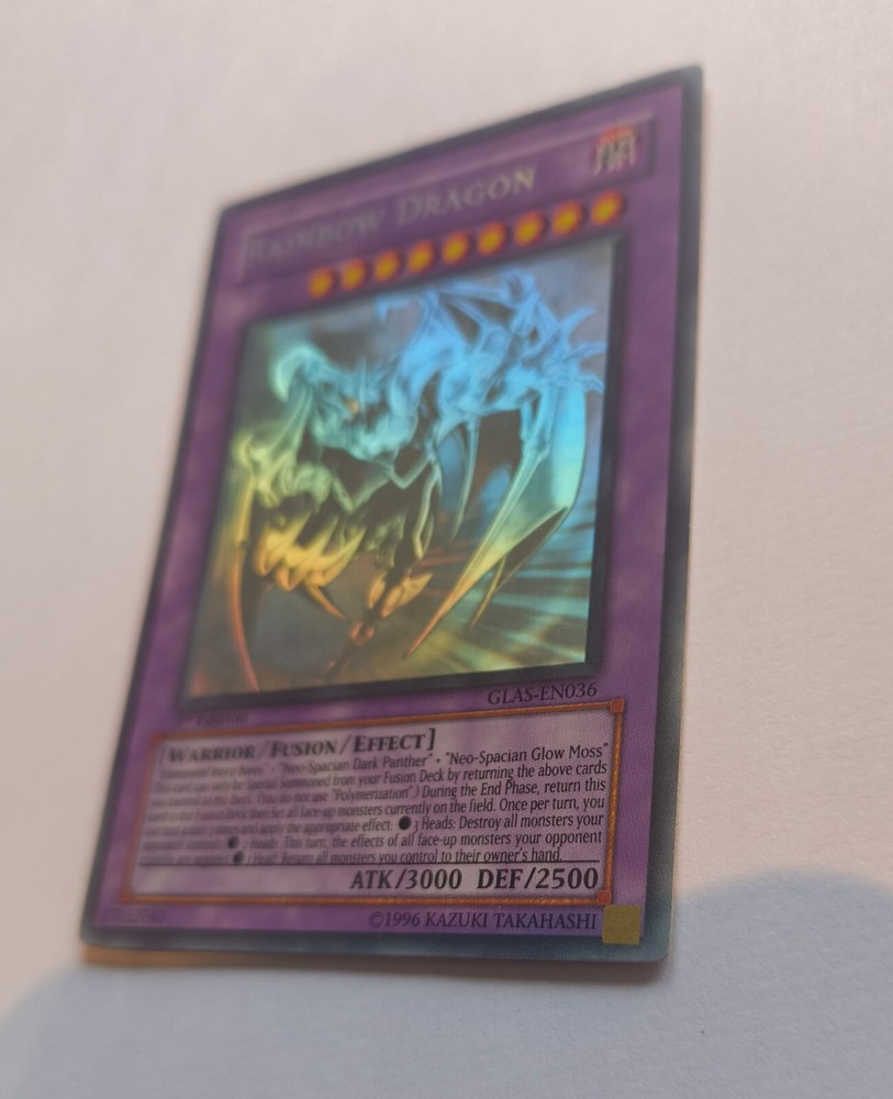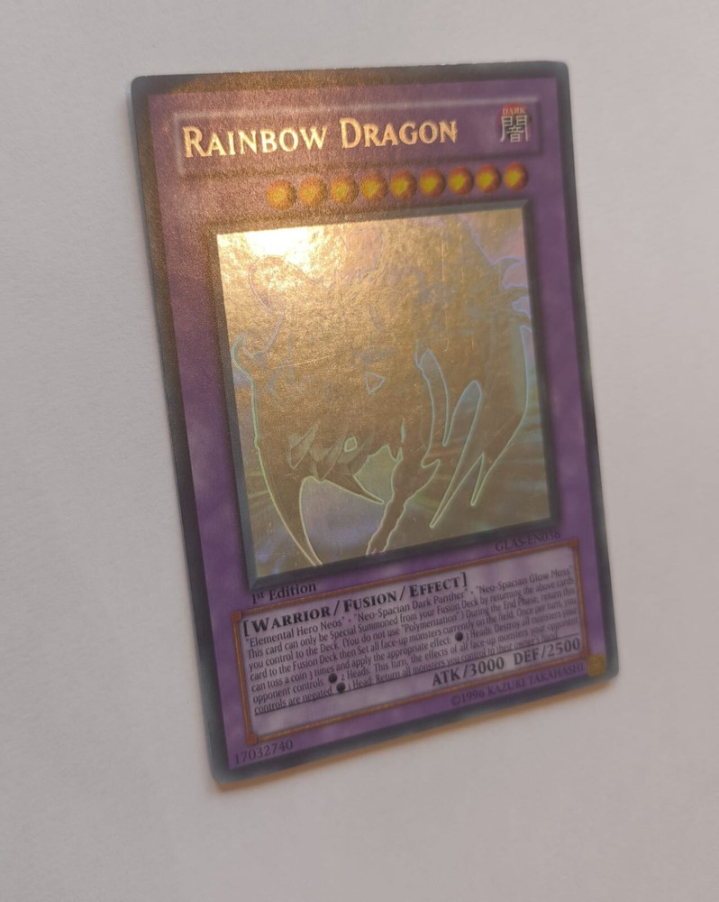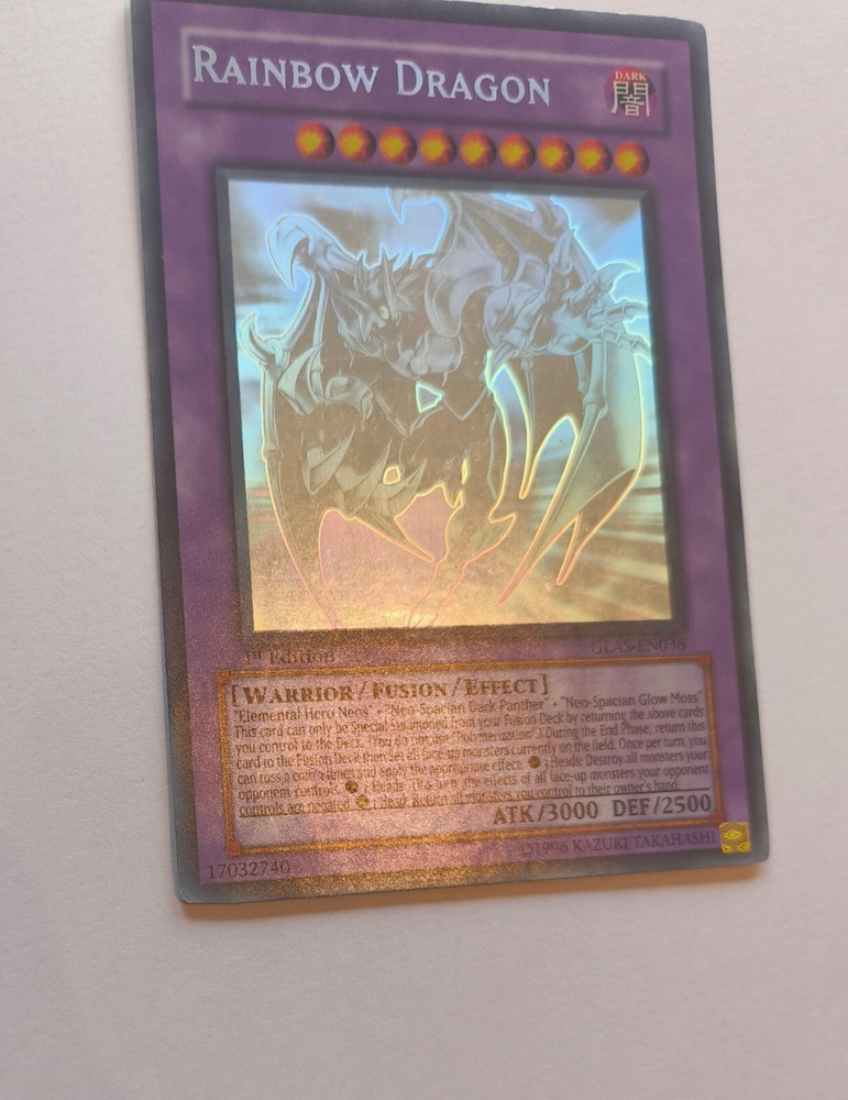 Hallo Yu-Gi-Oh Liebhaber, aufgrund anderer Anschaffungen trenne ich mich nun von dieser schönen, seltenen Karte. Es handelt sich um den Missprint des Rainbow Dragons / Elemental Hero Chaos Neos. Die Karte ist vor allem auf der Vorderseite in einem guten Zustand. Auf der Rückseite lassen sich kleine Mängel an den Seiten und an der oberen, rechten Kante finden (Siehe Fotos). Die Karte wird gut verpackt und doppelt gesleeved in einem Toploader versendet. Bei Preisvorschlägen oder anderen Fragen gerne melden! Bitte prüfen Sie die Karte sorgfältig, bevor Sie den Kauf abschließen, da eine Rückgabe oder ein Widerruf nach dem Kauf nicht möglich ist. Liebe Grüße Jake
