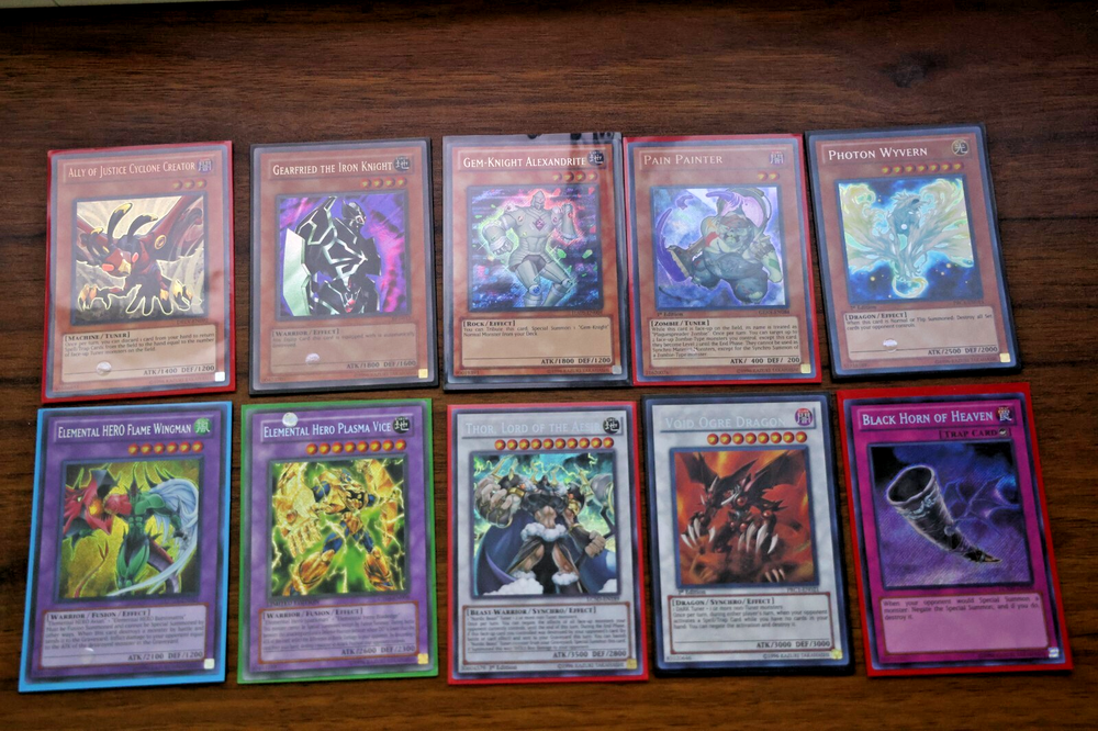 Lot 1 Selling 202 cards - No duplicates in (Ghost, Ultimate, Secret, Ultra, Super across all lots). There will be duplicates in the commons. Cards range from older sets Legend of Blue Eyes White Dragon (LOB) to the newer Supreme Darkness (SUDA). Condition of cards - Cards range from Near Mint to Medium Played. 1 Ghost Rare 5 Ultimates Rares 10 Secret Rares variety 15 Ultra Rares variety 21 Super Rares 150 Commons GHOST - LVAL-EN040 - MOBIUS THE MEGA MONARCH - 1ST EDITION ULTIMATE - SOD-EN027 - MIND ON AIR - UNLIMITED ULTIMATE - EEN-EN022 - BRRON, MAD KING OF DARK WORLD - 1ST EDITION ULTIMATE - ORCS-EN042 - NUMBER 12: CRIMSON SHADOW ARMOR NINJA - UNLIMITED ULTIMATE - FOTB-EN031 - SOUL OF FIRE - 1ST EDITION ULTIMATE - PTDN-EN074 - DRASTIC DROP OFF - UNLIMITED SECRET - DREV-EN092 - ALLY OF JUSTICE CYCLONE CREATOR - UNLIMITED SECRET - BPT-012 - GEARFRIED THE IRON KNIGHT - 2003 COLLECTOR'S TINS SECRET - HA05-EN004 - GEM-KNIGHT ALEXANDRITE - UNLIMITED SECRET - GENF-EN084 - PAIN PAINTER - 1ST EDITION SECRET - PRC1-EN015 - PHOTON WYVERN - 1ST EDITION SECRET - LCGX-EN045 - ELEMENTAL HERO FLAME WINGMAN - UNLIMITED SECRET - CT04-EN006 - ELEMENTAL HERO PLASMA VICE - COLLECTIBLE TINS 2007 WAVE 2 SECRET - LCTD-EN189 - THOR, LORD OF THE AESIR - 1ST EDITION SECRET - PRC1-EN021 - VOID OGRE DRAGON - 1ST EDITION SECRET - LCYW-EN300 - BLACK HORN OF HEAVEN - UNLIMITED ULTRA - GLD1-EN022 - CYBER DRAGON - LIMITED ULTRA - MAGO-EN002 - DARK MAGICIAN - 1ST EDITION UTLRA - GLD1-EN033 - BRAIN CONTROL - LIMITED ULTRA - PGL2-EN018 - NUMBER 21: FROZEN LADY JUSTICE - 1ST EDITION ULTRA - PSV-050 - BUSTER BLADER - UNLIMITED ULTRA - TLM-ENSE2 - CHAOS EMPEROR DRAGON - ENVOY OF THE END - LIMITED ULTRA - LOD-001 - DARK RULER HA DES - UNLIMITED ULTRA - TWED-EN001 - HONEST - LIMITED ULTRA - LC01-EN006 - RED-EYES B. DRAGON - LIMITED ULTRA - BLHR-EN034 - BATTLEWASP - TWINBOW THE ATTACKER - 1ST EDITION ULTRA - BLRR-EN018 - CYBER ELTANIN - 1ST EDITION ULTRA - DUDE-EN024 - DECODE TALKER EXTENDED - 1ST EDITION ULTRA - SDRR-EN041 - TOPOLOGIC ZEROBOROS - 1ST EDITION ULTRA - LEHD-ENB34 - ASCENSION SKY DRAGON - 1ST EDITION ULTRA - LED7-EN005 - BLAZE CANNON - 1ST EDITION SUPER - DESO-EN020 - ABYSS ACTOR - EXTRAS - 1ST EDITION SUPER - EXVC-EN008 - BLACKWING - HILLEN THE TENGU-WIND - UNLIMITED SUPER - RYMP-EN042 - CRYSTAL BEAST EMERALD TORTOISE - UNLIMITED SUPER - THSF-EN039 - DJINN PROGNOSTICATOR OF RITUALS - 1ST EDITION SUPER - LON-034 - FIRE PRINCESS - UNLIMITED SUPER - HA05-EN035 - GISHKI ARIEL - 1ST EDITION SUPER - ABYR-EN000 - IGNOBLE KNIGHT OF BLACK LAUNDSALLYN - 1ST EDITION SUPER - RGBT-EN002 - LEVEL WARRIOR - UNLIMITED SUPER - CRMS-EN086 - ROYAL SWAMP EEL - UNLIMITED SUPER - DP06-EN012 - EVIL HERO INFERNAL SNIPER - UNLIMITED SUPER - HA05-EN057 - FIRST STEP TOWARDS INFESTATION - 1ST EDITION SUPER - GEIM-EN024 - DRYTRON ALPHA THUBAN - 1ST EDITION SUPER - IGAS-EN026 - JACK-O-BOLAN - 1ST EDITION SUPER - TOCH-EN042 - MICRO CODER - UNLIMITED SUPER - SPWA-EN002 - SECRET SIX SAMURAI - GENBA - 1ST EDITION SUPER - IGAS-EN021 - WITCHCRAFTER GENNI - 1ST EDITION SUPER - RIRA-EN047 - LINKMAIL ARCHFIEND - UNLIMITED SUPER - SESL-EN021 - KANZASHI THE RIKKA QUEEN - 1ST EDITION SUPER - DANE-ENSE2 - FURY OF FIRE - LIMITED SUPER - INCH-EN059 - SPELLBOOK OF KNOWLEDGE - 1ST EDITION SUPER - CHIM-EN090 - DREAM MIRROR HYPNAGOGIA - 1ST EDITION