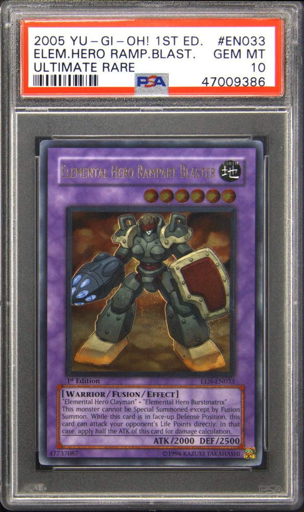 Elemental Hero Rampart Blaster Details Card set: Elemental Energy Card number: EEN-EN033 Card rarity: Ultimate Rare Description - Shipping Item(s) will be sent out the following business day after payment has been received. Tracking will always be provided and orders that are over $750 in value will require signature upon delivery. Questions Please do not hesitate to reach out if you have any questions or concerns in regard to this item. Thanks!