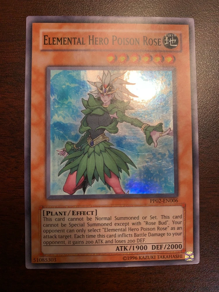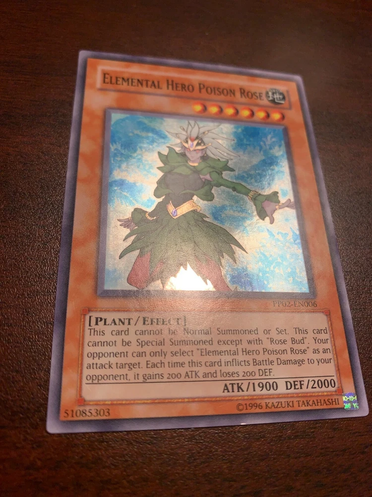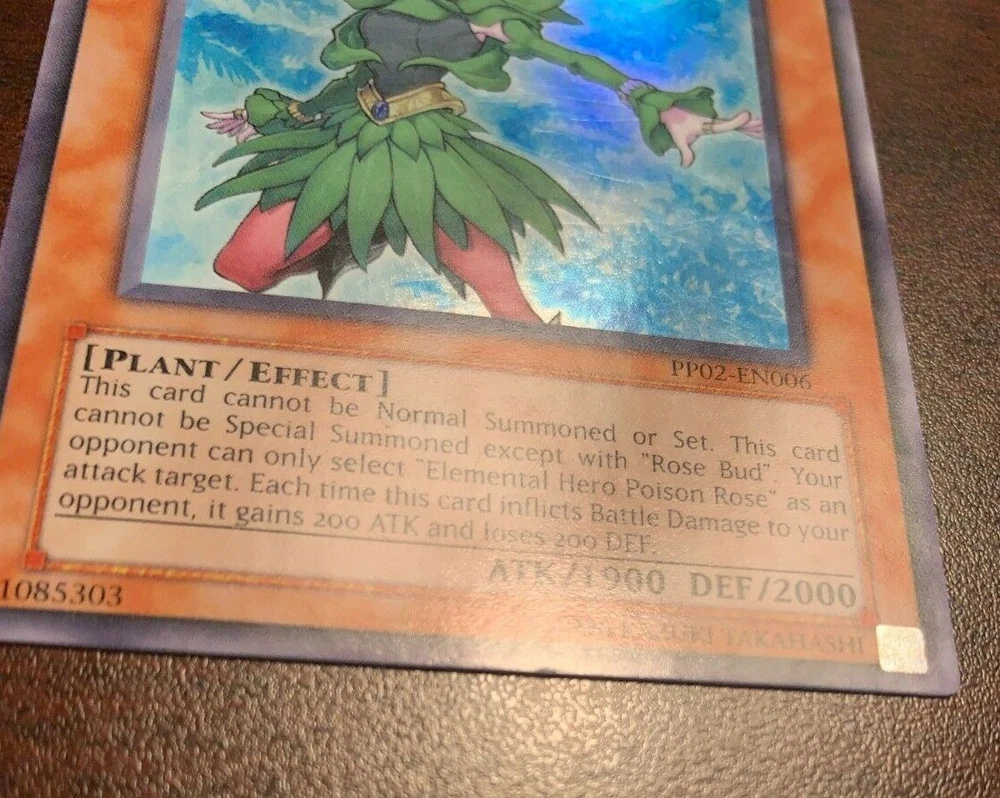 PP02-EN 001 - LP - Super Rare - Super War-Lion (Lot#1) PP02-EN 001 - LP - Super Rare - Super War-Lion (Lot#2) PP02-EN 002 - LP - Super Rare - Lion-War Ritual PP02-EN 006 - VLP - Super Rare - Elemental Hero Poison Rose PP02-EN 011 - NM - Super Rare - Rose Bud (Lot#1) PP02-EN 011 - NM - Super Rare - Rose Bud (Lot#2) PP02-EN 011 - VLP - Super Rare - Rose Bud (Lot#3) PP02-EN 013 - VLP - Super Rare - Terra Firma Gravity (Lot#1) PP02-EN 013 - NM - Super Rare - Terra Firma Gravity (Lot#2) PP02-EN019 - VLP - Super Rare - Hecatrice Condition: Condition as described above. - I try to show any damage there may be as well as I can in the pictures. - Grading is subjective, so remember that you are buying the cards in the pictures. - All images are of the actual item you will receive. Payments: - Payments must be received within 3 days of purchasing this item. Shipping: - Shipping and handling is always FREE! Shipments are made within 2-3 business days of payment being received. - Tracking will be provided with orders over $20 (US) and $40 for any international orders. - International orders will be shipped with economy shipping and may take 2-3 weeks to arrive. First-Class International shipping will be available for $15 if you choose. - Please contact me if there is anything wrong with your order or shipping before leaving feedback. Please give me a chance to fix any problem you may have. Thank you! Grading Scale: - **NM/M (Near Mint/Mint) - Basically flawless. - **NM (Near Mint) - Close to flawless, may have one or two very minor imperfections. - VLP (Very Light Play) - May have very light edge or corner wear. - LP (Lightly Played) - Has corner wear. May have a very light crease. - MP (Moderately Played) - Quite a bit of corner wear. May have medium creases or deep scratches. - HP (Heavily Played) - Corners are probably rounded with wear. May have one heavy crease. - Damaged - May have multiple heavy creases. Corners may be very damaged . Could have water damage. **Please note that the NM and NM/M grades may not account for the microscopic scratches on the foil from rubbing against other cards. Though, I will note if the card has more than normal scratching. Message me if you would like to have more photos of the card in question. Return Policy: - I list all of my items as honestly as possible, a full refund will be provided if the item does not meet the description given or with the customers satisfaction. International Buyers: - Import duties, taxes, and charges are not included in the item price or shipping cost. These charges are the buyer's responsibility. - Please check with your country's customs office to determine what these additional costs will be prior to bidding or buying.