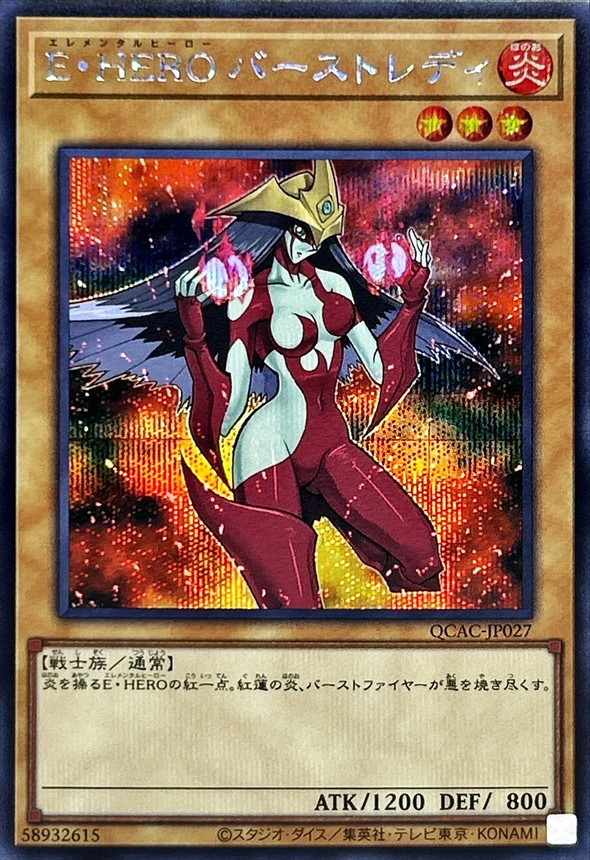 Item Title Description YuGiOh QCAC-JP027 Elemental HERO Burstinatrix Secret Shipping Economy Shipping (No Tracking Japan Post) : $0 Standard Shipping (With Tracking Japan Post) : $4.00 Expedited Shipping (FedEx International Priority ): Additional fees International Buyers - Please Note: Import duties, taxes, and charges are not included in the item price or shipping cost. These charges are the buyer's responsibility. Please check with your country's customs office to determine what these additional costs will be prior to bidding or buying.