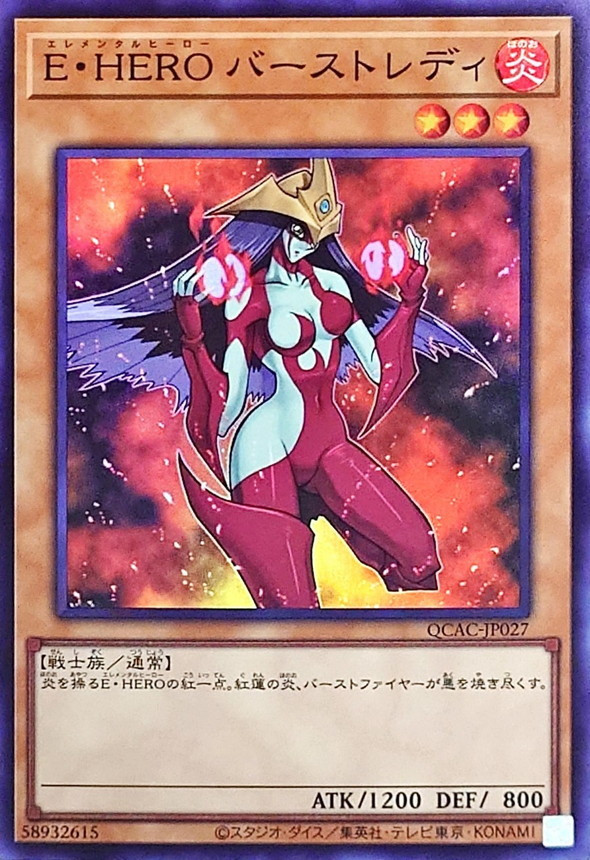 Item Title Description YuGiOh QCAC-JP027 Elemental HERO Burstinatrix Super Shipping Economy Shipping (No Tracking Japan Post) : $0 Standard Shipping (With Tracking Japan Post) : $4.00 Expedited Shipping (FedEx International Priority ): Additional fees International Buyers - Please Note: Import duties, taxes, and charges are not included in the item price or shipping cost. These charges are the buyer's responsibility. Please check with your country's customs office to determine what these additional costs will be prior to bidding or buying.