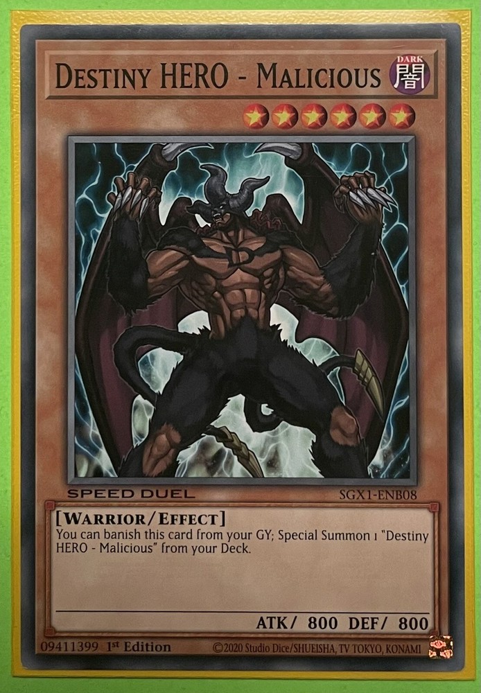 | Card Name | Yu-Gi-Oh! Speed Duel Destiny Hero-Malicious Common SGX1-ENB08 Nea |