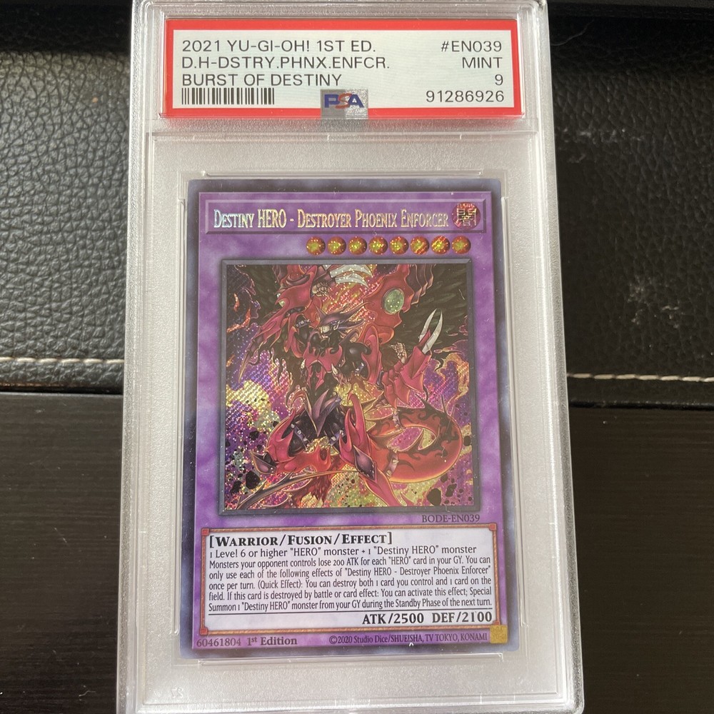 Yu-Gi-Oh! TCG Destiny HERO - Destroyer Phoenix Enforcer BODE-EN039 PSA 9. Condition is Graded. Shipped with USPS Ground Advantage....