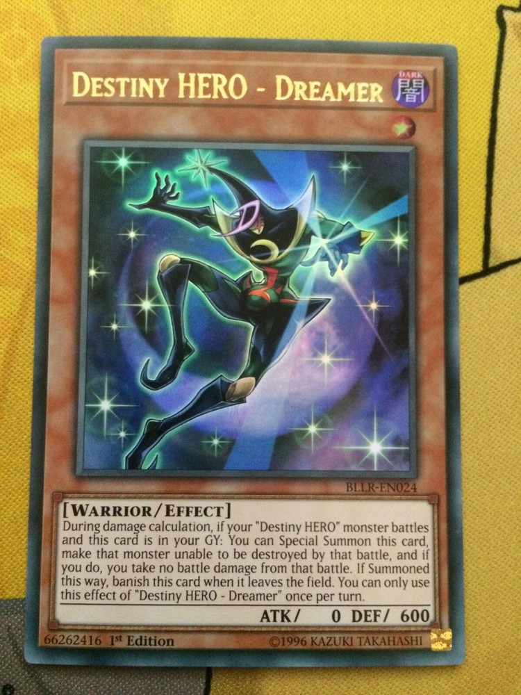 Selling Yu-Gi-Oh! TCG - Destiny Hero - Dreamer - BLLR-EN024 - Ultra Rare, 1st Ed. Have never been used. Item(s)will be sent within 2-4 business days of purchase once payment has been confirmed. If you have any questions, don't hesitate to ask.