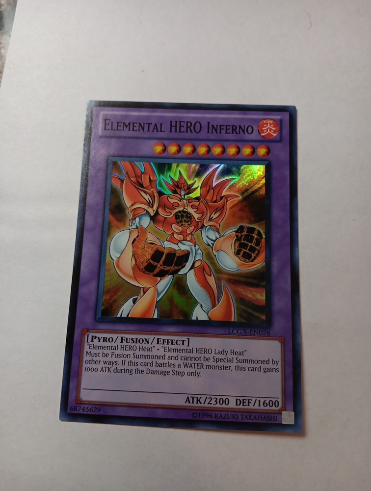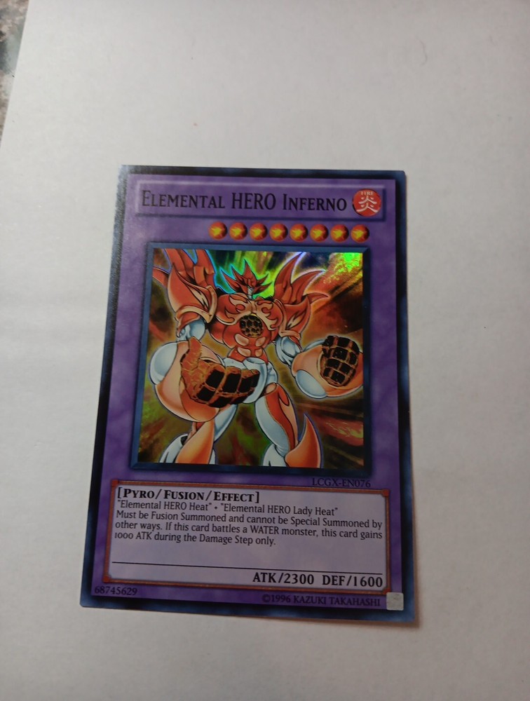 This rare and highly sought-after card is perfect for any Yu-Gi-Oh! TCG collector or player. With its vibrant Fire attribute and Super Rare rarity, the Elemental Hero Inferno card is a must-have for any serious player. This Fusion/Effect Monster card, with card number LCGX-EN076, is manufactured by Academy and is part of the Legendary Collection 2: The Duel Academy Years set. The card features the Pyro creature/monster type and has a card type of Fusion/Effect Monster. It also has an Unlimited feature and belongs to the CCG Individual Cards category. Don't miss your chance to add this incredible card to your collection or use it to enhance your gameplay strategy.