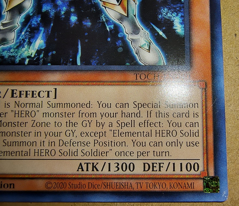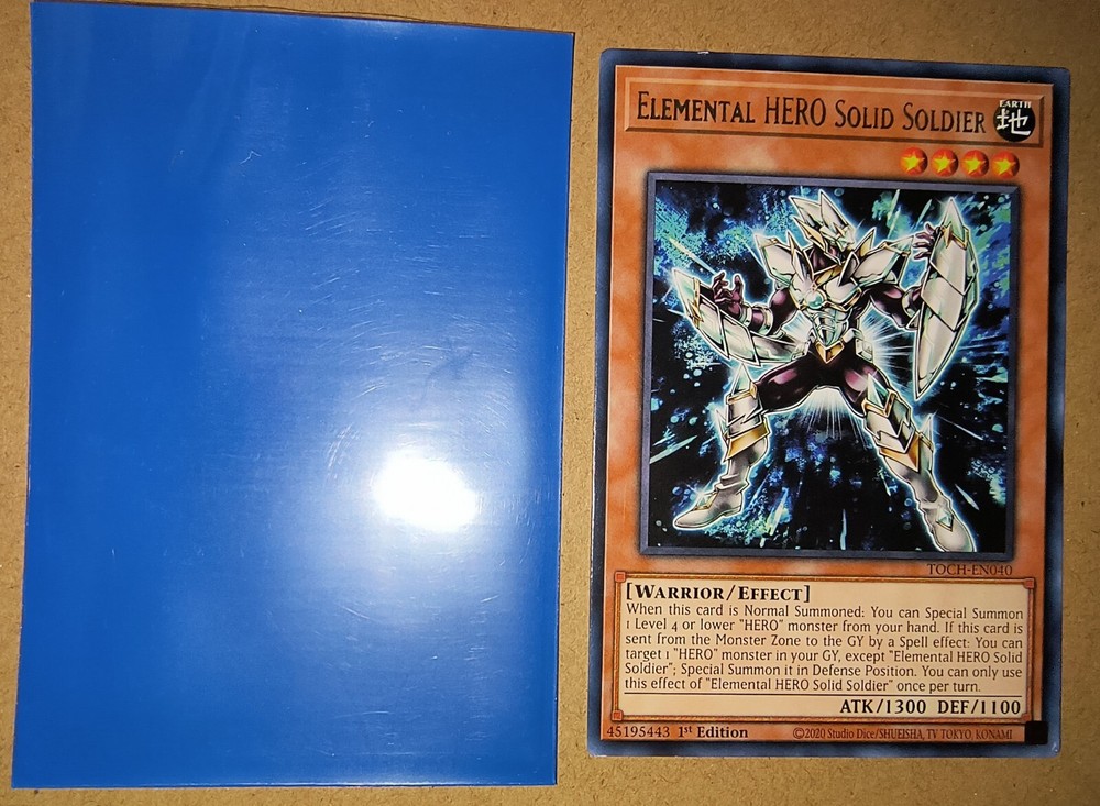 Up for sale is a rare 1st Edition Elemental HERO Solid Soldier card from the Yu-Gi-Oh! TCG set Toon Chaos (TOCH-EN040). This card features a Warrior monster type with impressive Attack/Power and Defense/Toughness stats of 1300 and 1100 respectively. It is made of high-quality card stock material and has a regular finish. The card is in excellent shape and has been well-maintained. It would make a great addition to any collection or deck. This card is perfect for fans of the Yu-Gi-Oh! TCG who are looking to expand their collections or add to their decks. Don't miss out on this opportunity to own a rare and powerful card. Please see attached pictures for condition Thank you