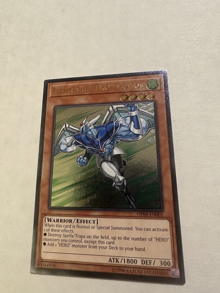 Yu-Gi-Oh! TCG Elemental HERO Stratos OP09-EN001 Ultimate NM. Condition is Ungraded. Shipped with USPS Ground Advantage.