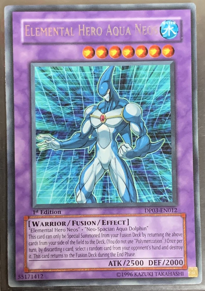 Hello, this auction is for the Yu-Gi-Oh! 1st Edition Elemental Hero Aqua Neos. Item is in great condition in card top loader. This is a great addition to any Yu Gi Oh collection. Don’t miss out. Message me if you have ANY questions. All of my items are 100% authentic. They were all purchased at different retail stores. All my items are packaged securely and protectively. All sales are final. No non paying bidders Please! It’s a hassle to re-list, it takes days. It may seem like bidding and not paying is harmless, but it’s a lot more. If you don’t intended to pay... don’t bid. Payment is due within 48 hours after auction ends. Of course I am willing to make arrangements if more time is needed. Thank you