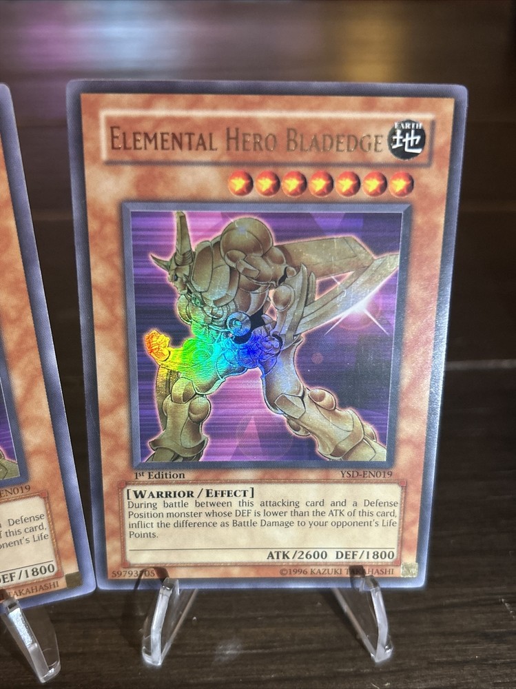 Yu-Gi-Oh! TCG Elemental Hero Bladedge Starter Deck 2006 YSD-EN019 1st Edition.... both cards are MINT and come in card sleeves