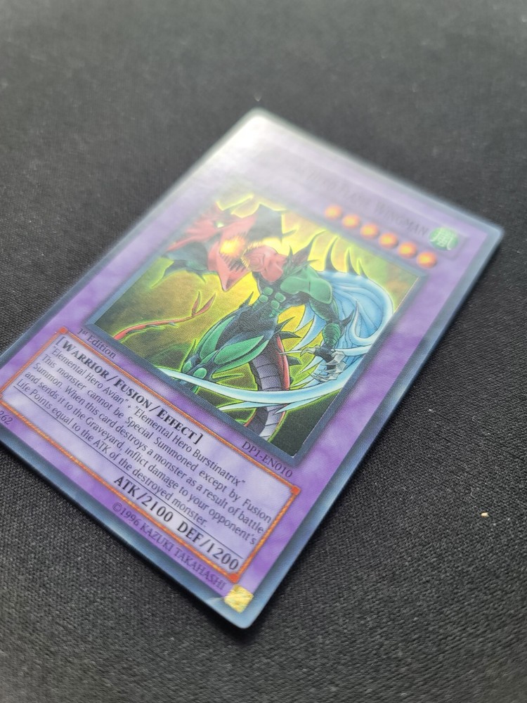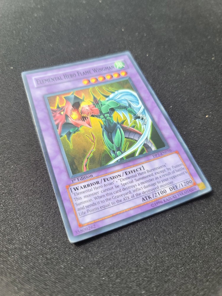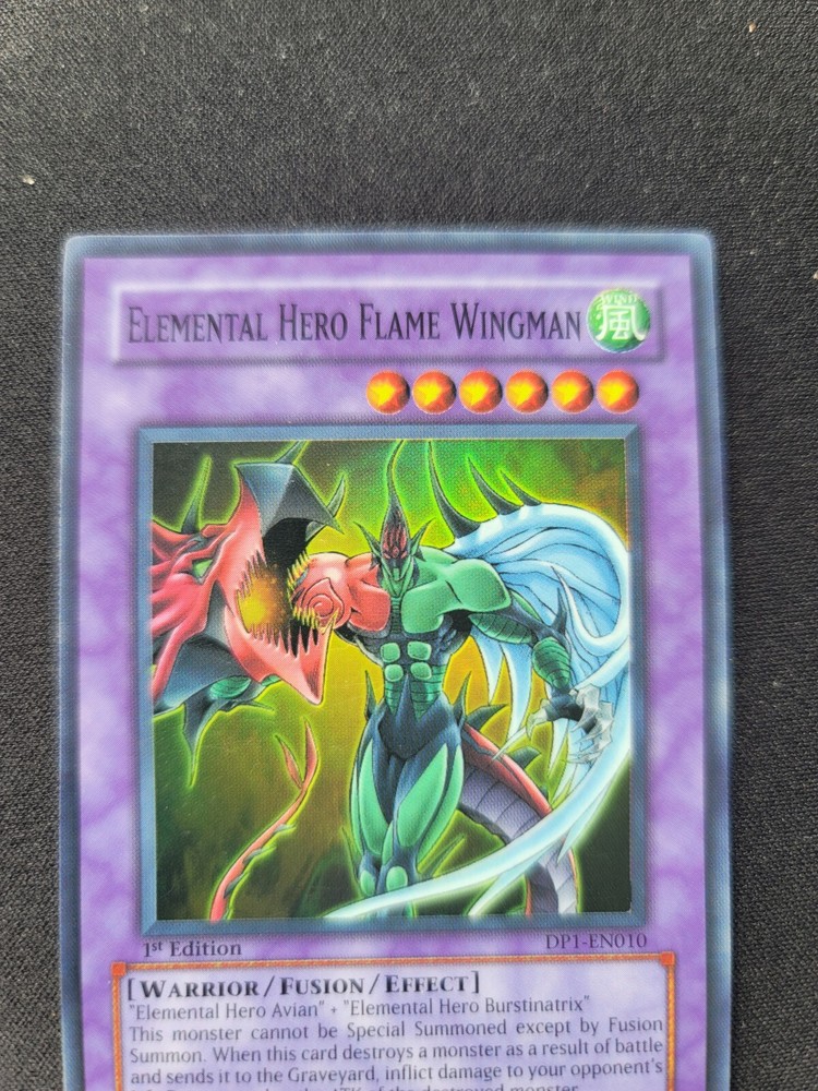 YuGiOh! TCG Elemental Hero Flame Wingman 1st Edition DP1-EN010 Super Rare NM....