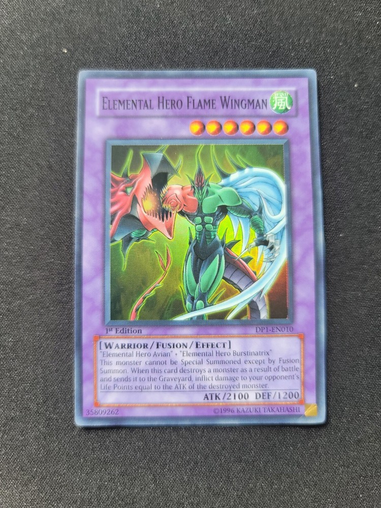 YuGiOh! TCG Elemental Hero Flame Wingman 1st Edition DP1-EN010 Super Rare NM.