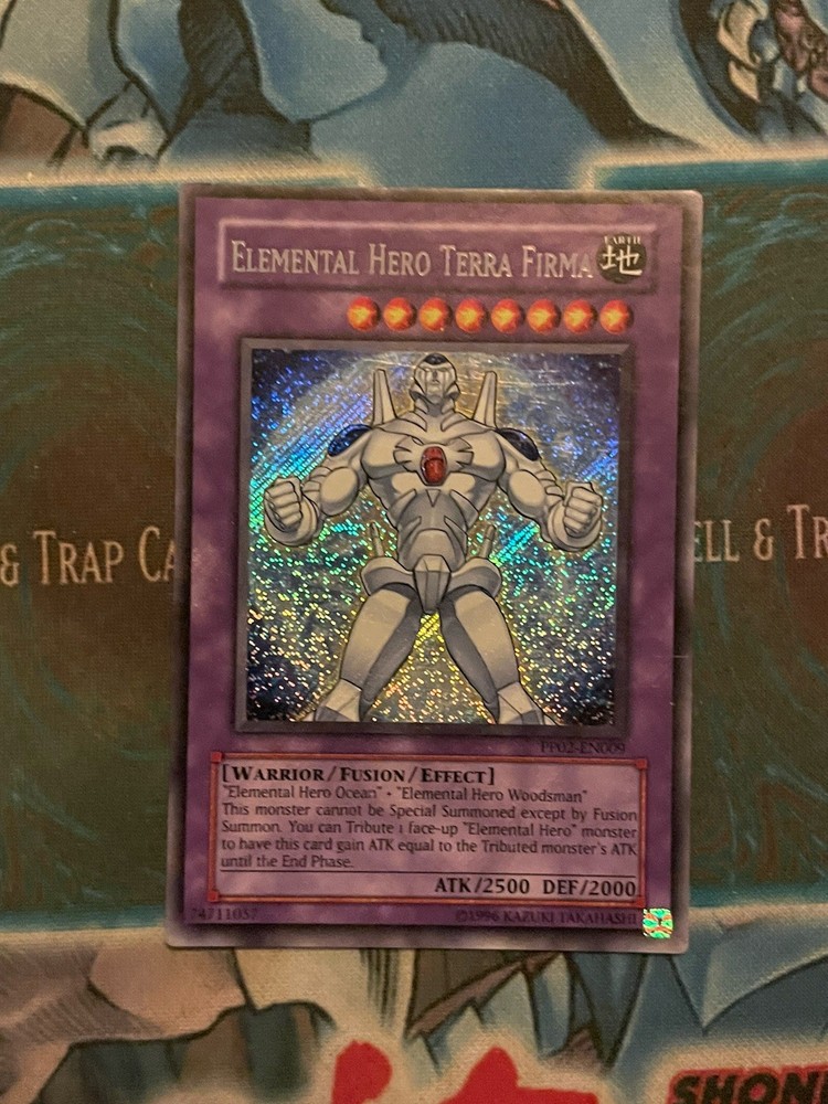 The Yu-Gi-Oh! TCG Elemental Hero Terra Firma Premium Pack 2 PP02-EN009 Unlimited is a rare and sought-after card featuring the Earth attribute, Warrior creature type, and a high defense and attack power of 2000 and 2500 respectively. Manufactured by Konami, this Secret Rare card is a valuable addition to any Yu-Gi-Oh! TCG collection. With near mint or better condition and in English language, this card is a must-have for fans and collectors of the game.