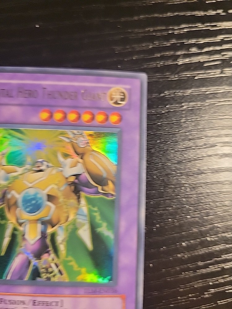 The item is a "Yu-Gi-Oh! TCG Elemental Hero Thunder Giant" card from the set "The Lost Millennium." This Ultra Rare card features a Warrior monster with 2400 Attack and 1500 Defense points, belonging to the Light attribute. It is a 1st Edition Fusion card with card number TLM-EN036, manufactured by Konami in English language. A sought-after collectible in the world of trading card games, this card is a valuable addition to any Yu-Gi-Oh! TCG deck.