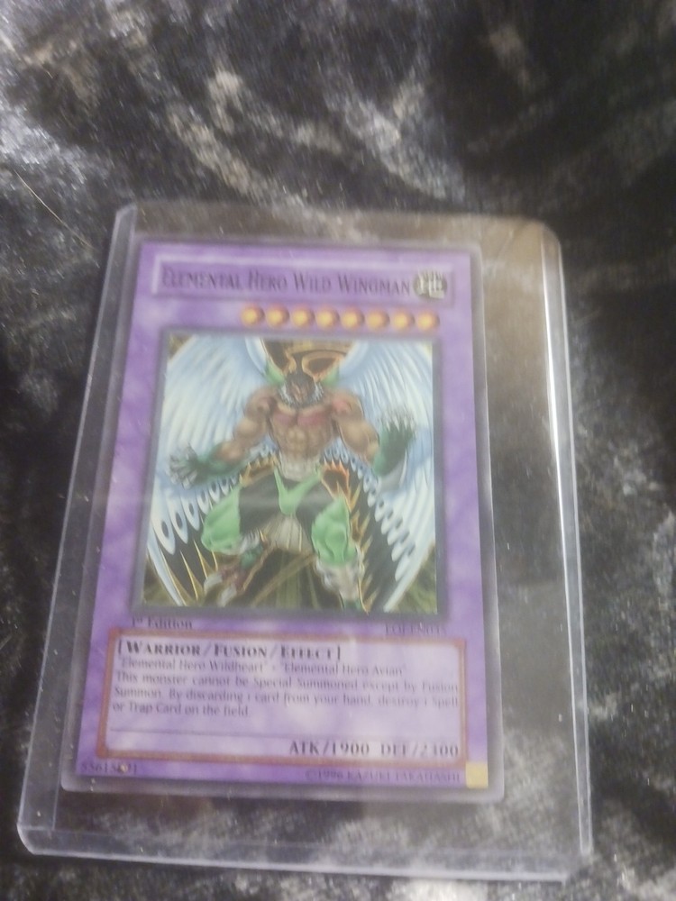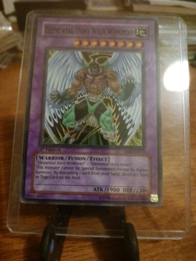 Enhance your Yu-Gi-Oh! TCG collection with the formidable Elemental Hero Wild Wingman from the Enemy of Justice set. As a Super Rare card numbered EOJ-EN035, it features the powerful Warrior-type creature with an attack power of 1900 and a defense strength of 2300, ready to dominate the battlefield. This English-language card is a must-have for duelists aiming to increase their game's strategic depth. Produced by Konami, it boasts the 1st Edition status, making it a treasured piece for both collectors and players. Add the Earth attribute Fusion card to your deck and unleash the Wild Wingman's mighty powers upon your opponents.